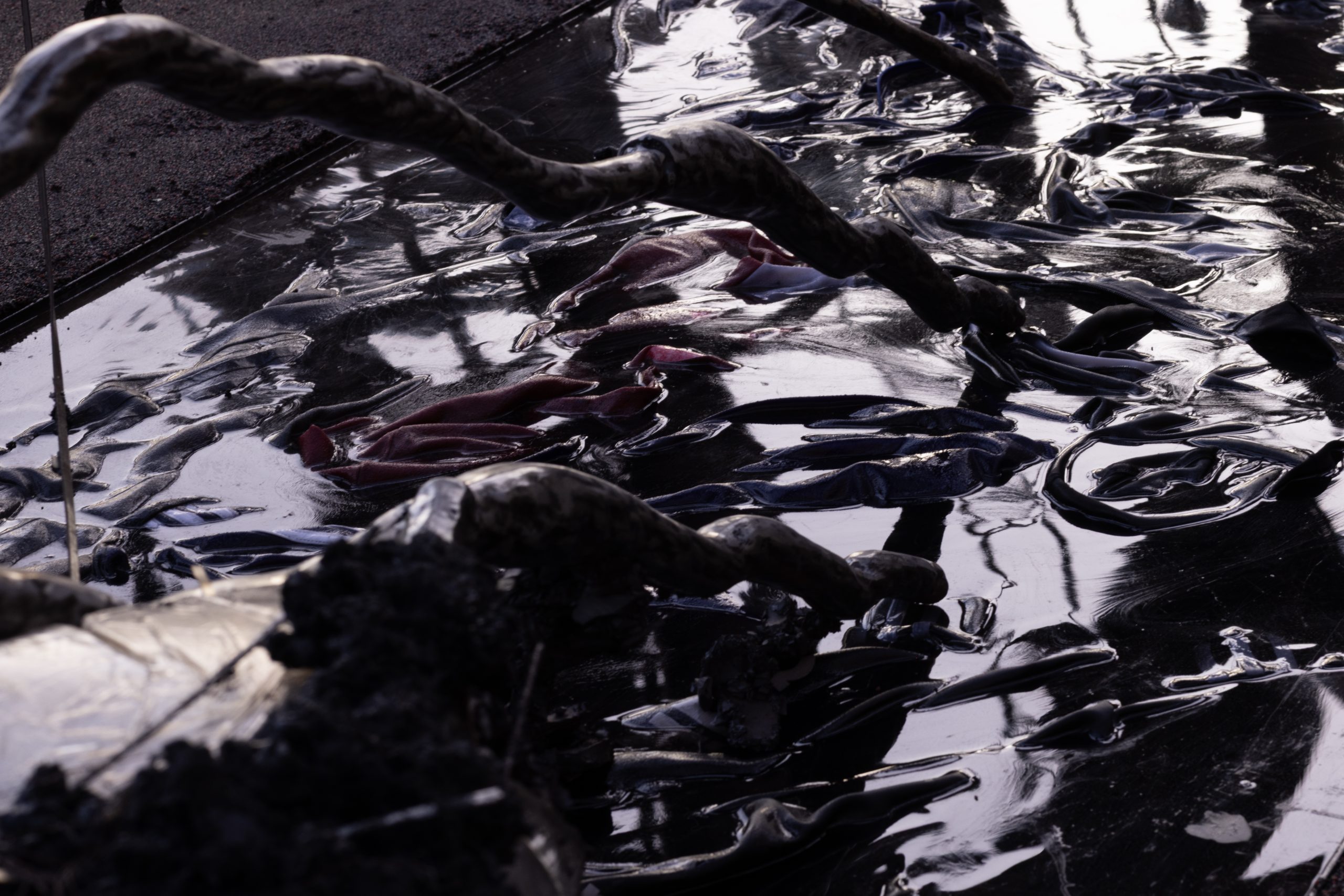 Οι υποκουλτούρες των ρέιβ πάρτυΕκτός από αυτό, όμως, ο Αλέξανδρος Τζαννής δημιούργησε μια ακόμη κατασκευή, από σίδηρο και ρητίνες, μια εντυπωσιακή πλατφόρμα μέσα στην οποία «βυθίζονται», παγωμένες στον χρόνο, αθλητικές φόρμες, μια μνημονική αναφορά στις προηγούμενες χρήσεις του χώρου ως «ξενιστή» ρέιβ πάρτυ, πάνω στην οποία αγκιστρώνονται μαγνήτες και διάφορα άλλα παρασιτικά στοιχεία.