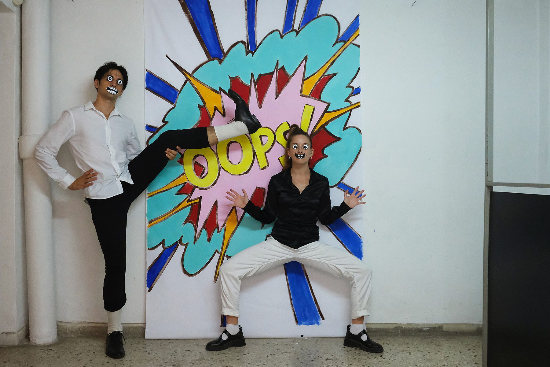Ο χώρος που επέλεξε το δημιουργικό δίδυμο της Nova Melancholia (Βασίλης Νούλας και Κώστας Τζημούλης) για να παρουσιάσει την καινούργια του δουλειά, με τίτλο το επιφώνημα «Oops!», δεν προϊδεάζει για το είδος του θεάματος που φιλοξενεί. Χωμένο σε μια πάροδο της οδού Μενάνδρου, αντίκρυ στο Εθνικό Θέατρο, το Μ54 είναι αφιερωμένο στον σύγχρονο χορό – σε χορευτικές παραστάσεις και πρόβες.