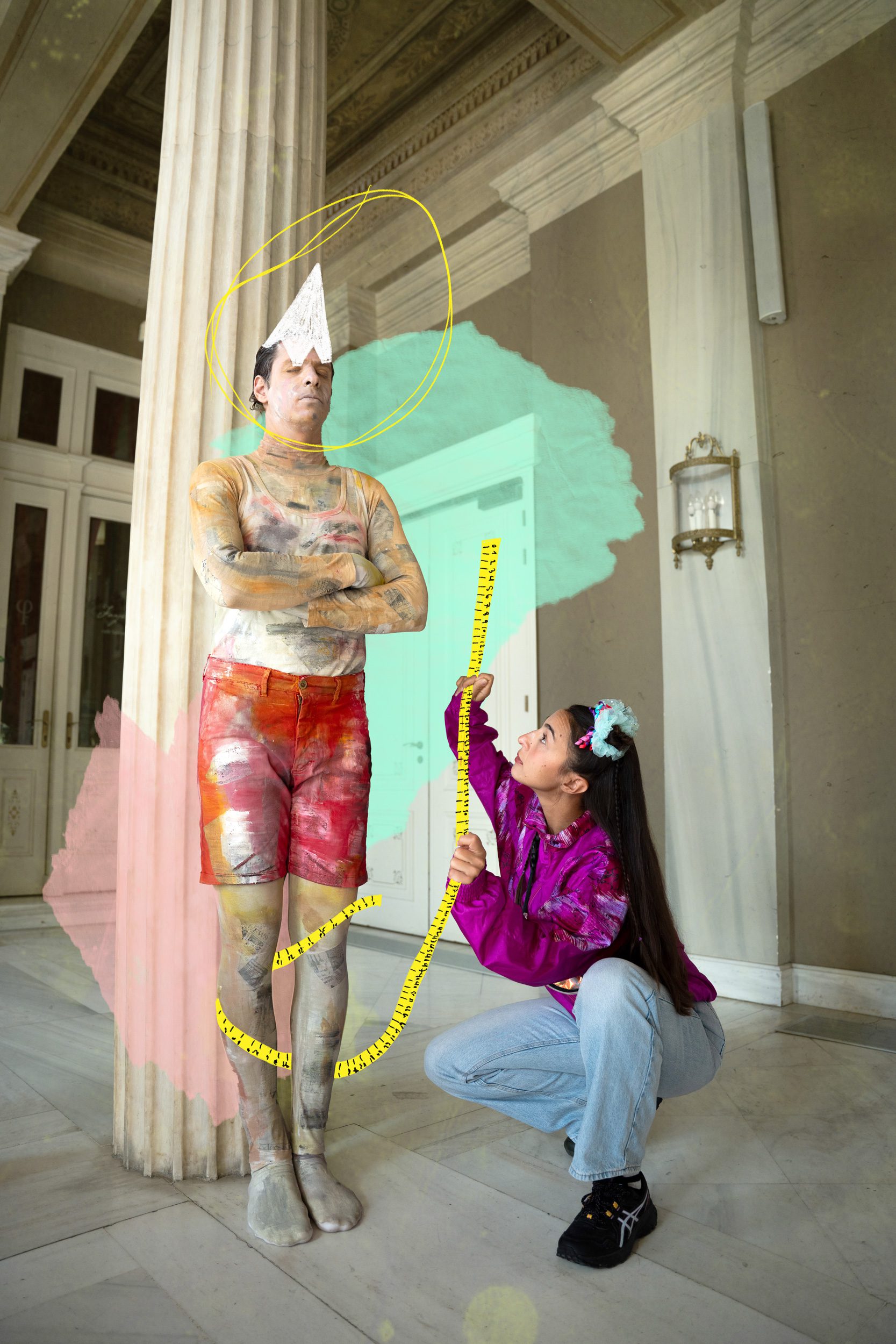 Δανάη Μέγα: Η παράσταση αναπροσαρμόστηκε και άλλαξε εν τέλει ολοκληρωτικά. Αυτό που κρατήσαμε είναι μόνο οι δύο χαρακτήρες, η Σελίν και το Bien – το άγαλμα – που αυτή τη φορά το ’σκασε όχι μόνο από ένα μουσείο, αλλά και από τον ίδιο του τον ρόλο. Τρυπώνει κατά λάθος στο Δημοτικό Θέατρο Πειραιά αναζητώντας έναν χώρο όπου θα μπορέσει να «εκτεθεί» μόνο του, χωρίς συγκρίσεις, χωρίς να μετριέται απέναντι σε άλλα έργα. Η Σελίν προσγειώνεται κι εκείνη σε αυτό το θέατρο και μαζί ξεκινούν ένα νέο ταξίδι. Οι δυο τους, αναμετριούνται με καινούριες περιπέτειες, που μπλέκουν την πολιτιστική κληρονομιά του θεάτρου με μια νέα ανατρεπτική ιστορία για τη φαντασία, τη δημιουργία και το θάρρος να ακολουθείς τη δική σου κίνηση, ακόμη κι όταν γύρω σου όλα μοιάζουν ακίνητα. Είναι μια ιστορία για τη φιλία, τη συνύπαρξη, τη μνήμη και τη δύναμη του να δίνεις ζωή στα πράγματα που αγαπάς. Στη Γλυπτοθήκη η διαδραστικότητα με το κοινό ήταν συνεχής. Στο θέατρο αυτή η «διάρρηξη του τοίχου» γίνεται πια σε συγκεκριμένες στιγμές, ακριβείς και ουσιαστικές. Η αφήγηση είναι νέα, ο κόσμος του έργου έχει επανασχεδιαστεί – θα έλεγα πως δεν έχουμε μια μεταφορά, αλλά μια επανεφεύρεση. Και βέβαια, ο ίδιος ο χώρος του Δημοτικού Θεάτρου Πειραιά, ως μνημείο, προσθέτει μια απίστευτη δυναμική – ένα μνημείο συχνά φέρει πάνω του ένα βάρος που φαντάζει απόμακρο. Όμως όταν τοποθετήσεις μέσα του μια σύγχρονη ιστορία, ζωντανή, παιγμένη για, και με τα παιδιά, τότε το μνημειακό έρχεται πιο κοντά στον άνθρωπο. Σπάει τους κανόνες του, ξανατοποθετείται στο σήμερα και αποκαλύπτεται ως ένας χώρος που μπορεί να αναπνέει, να παίζει και να εμπνέει. Τα υπόλοιπα θα τα δείτε στη σκηνή. Δεν θέλω να αποκαλύψω περισσότερα.