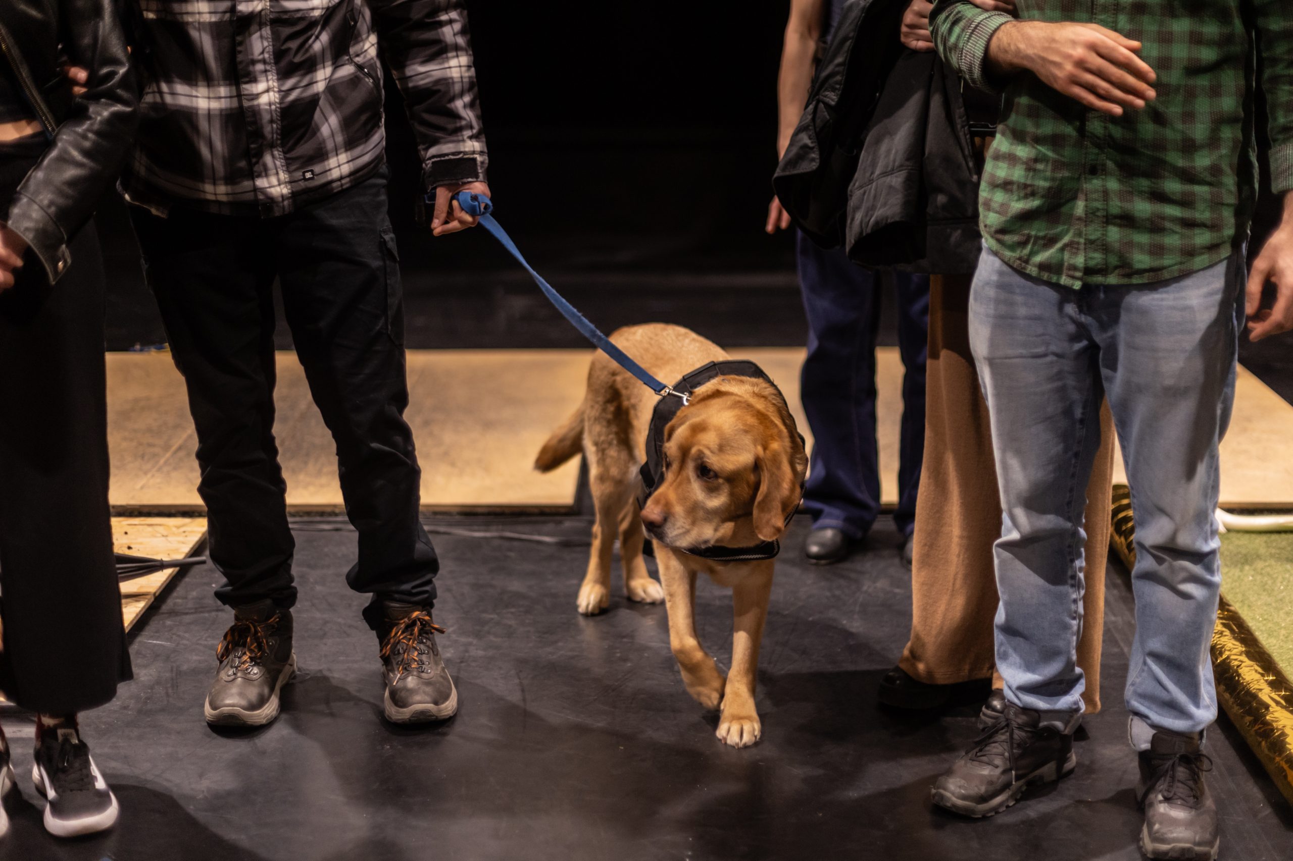 Σκύλοι οδηγοί κατά την είσοδο των τυφλών θεατών στο θέατρο. @Μαργαρίτα Γιόκο Νικητάκη – Στέγη Ωνάση