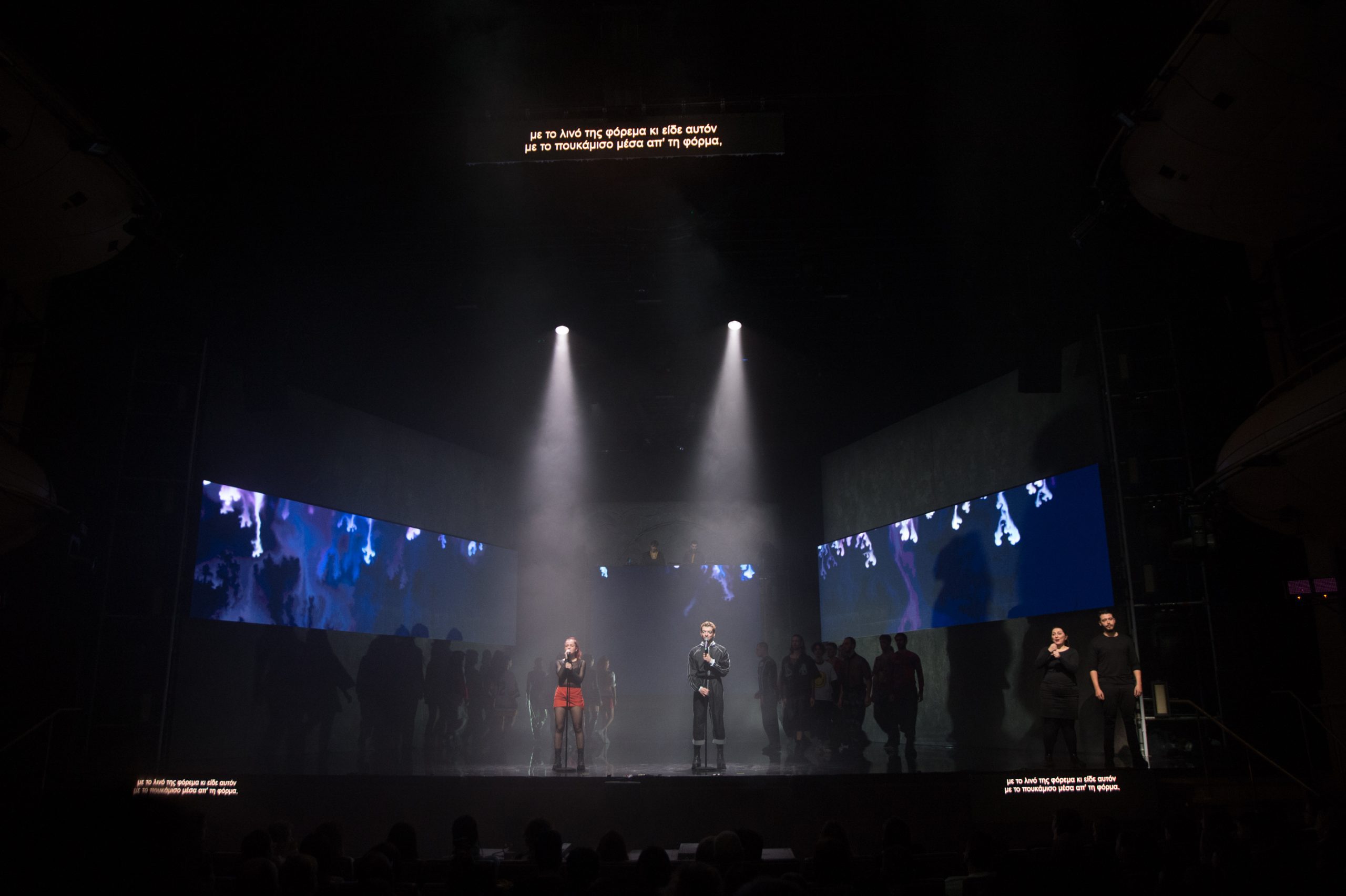 Σκηνή από το περσινό “Oxygen” σε σκηνοθεσία Γιώργου Κουτλή με παράλληλη διερμηνεία στη νοηματική και υπηρεσία υποτιτλισμού για κωφά άτομα. @Πάνος Κέφαλος-Στέγη Ωνάση