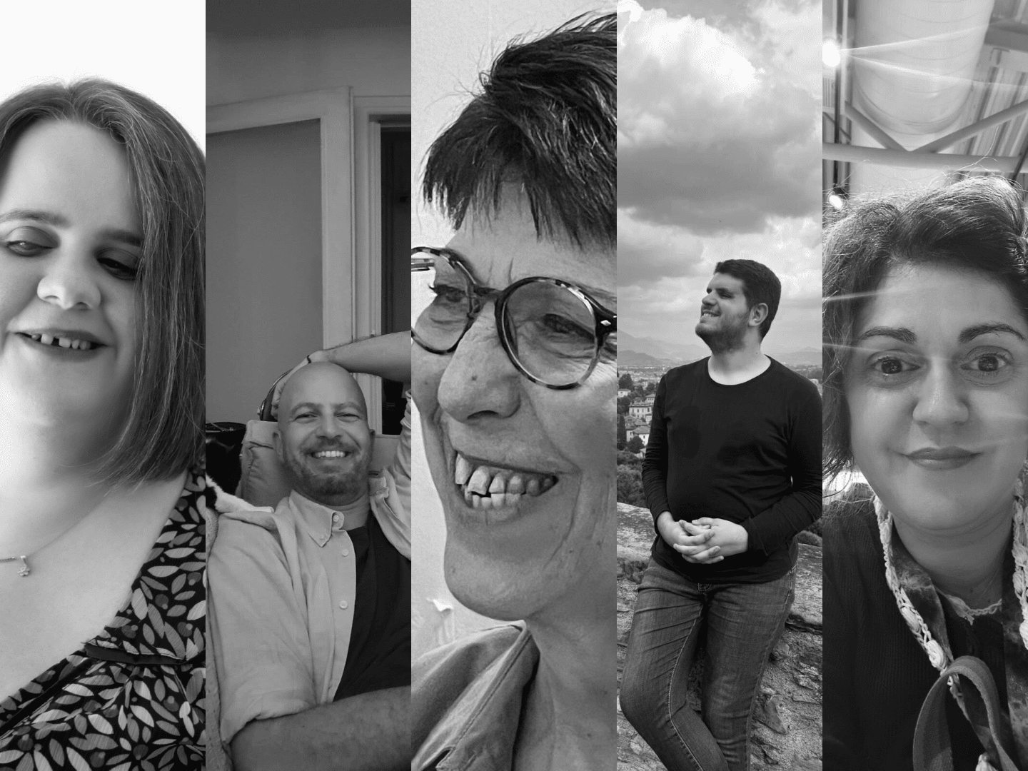 Πέντε θεατές και συνάμα άτομα με αναπηρία καταθέτουν την εμπειρία τους περί προσβασιμότητας στους χώρους πολιτισμού (από δεξιά) Χρυσέλλα Λαγαρία, Πάνος Τσινάρης, Φιλαρέτη Παπαδοπούλου, Γιάννης Βίτσος και Ισμήνη Πολίτη. @Μαρία Βαλτζάκη