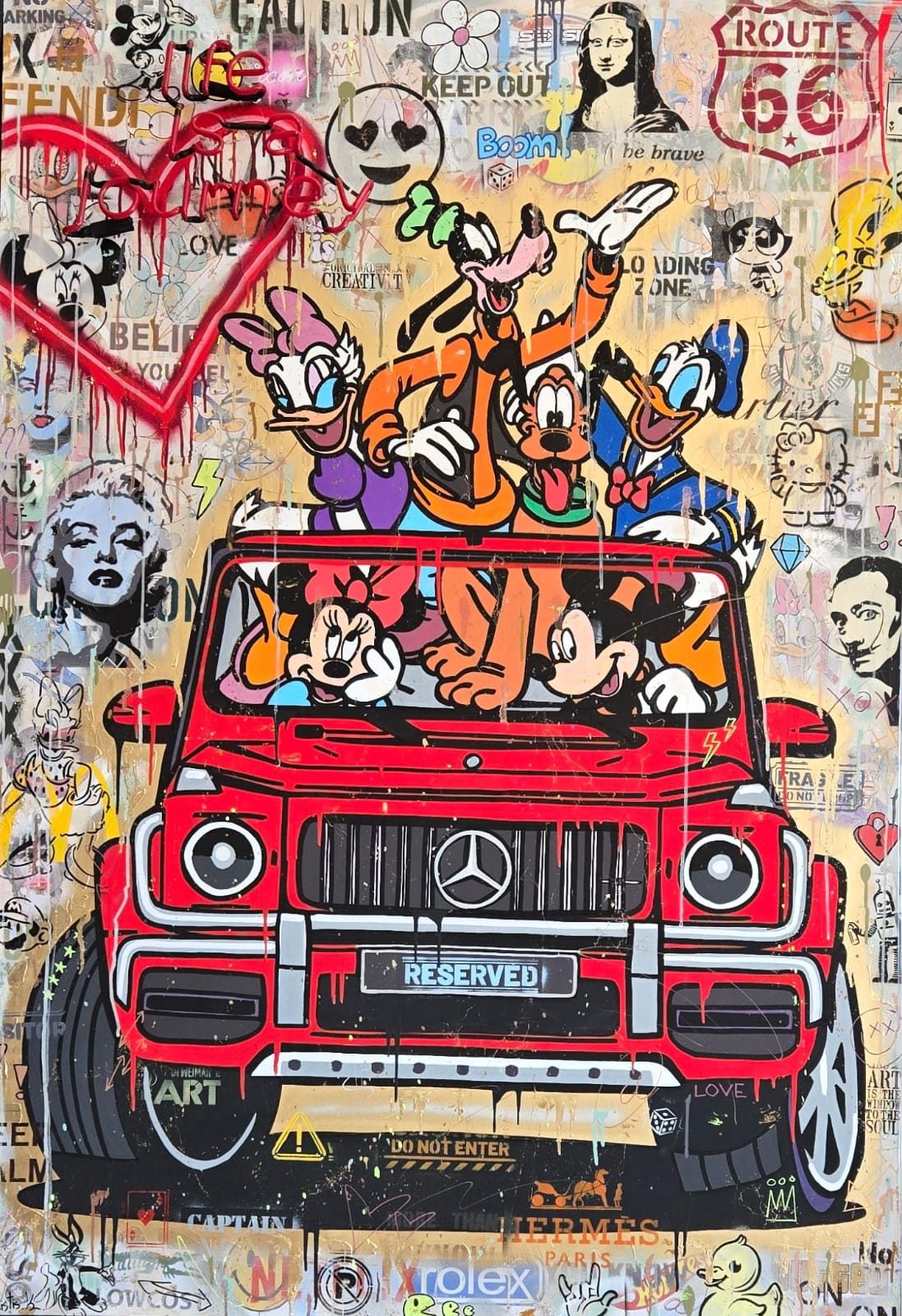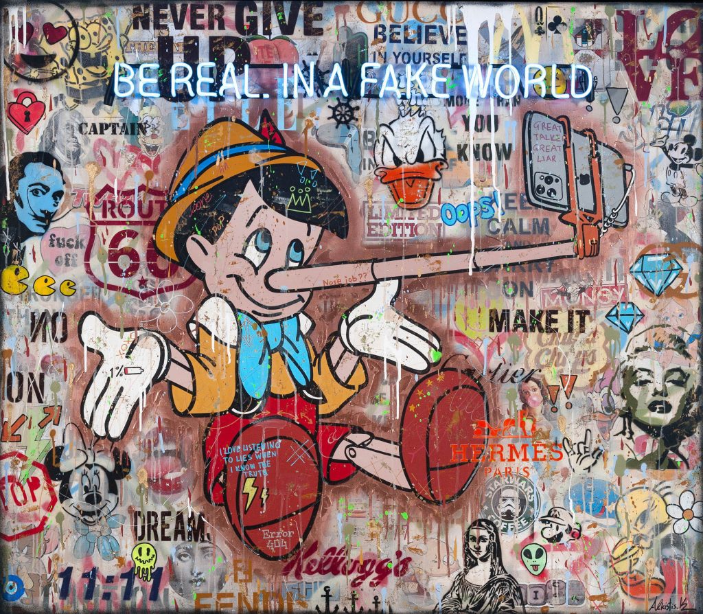 Έτσι ο Σκρουτζ αντί για την τυχερή του δεκάρα κρατά κρύπτονομισμα, ο Ντάφι Ντακ έχει σώμα γυμναστηρίου, με σούπερ κοιλιακούς, ο Πινόκιο έχει μύτη selfie stick, ο Ροζ Πάνθηρας έχει αποκτήσει σύγχρονα αξεσουάρ, η Χιονάτη δεν υποδέχεται και τόσο ρομαντικά τον πρίγκιπα που θα την ξυπνήσει από τη νάρκη της, ο Μίκυ έχει κεφάλι ρομπότ, η Μόνα Λίζα έχει φουσκωμένο στήθος και τατουάζ, ενώ η Στρουμφίτα παίρνει τη θέση της Αφροδίτης σε μια νέα προσέγγιση του πίνακα «Γέννηση της Αφροδίτης» του Μποτιτσέλι.