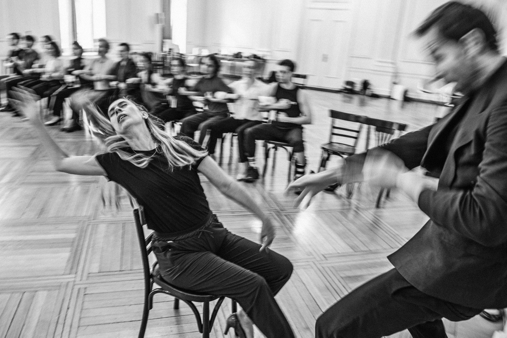 Βίκυ Βολιώτη και Δημήτρης Γεωργιάδης σε σκηνή των προβών του “Kontakthof”. @Κάρολ Γιάρεκ