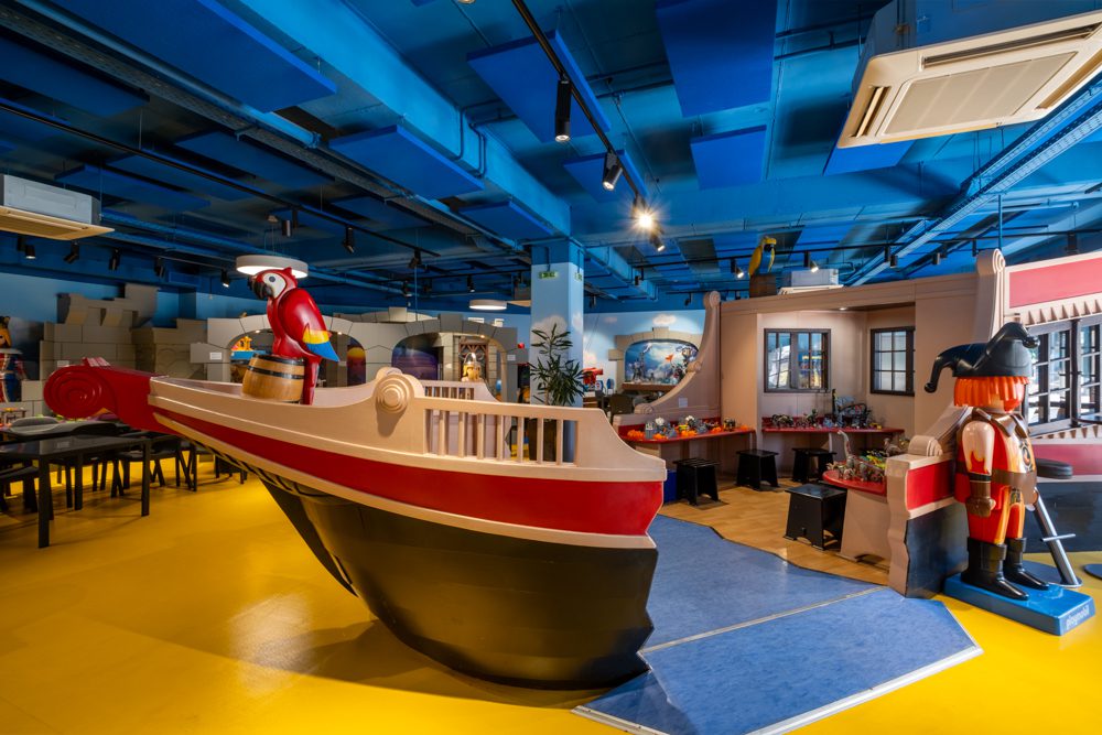 Σε έναν ειδικά διαμορφωμένο, φωτεινό και απόλυτα ασφαλή χώρο, τα παιδιά μπαίνουν κυριολεκτικά στον μαγικό κόσμο της PLAYMOBIL. Κάστρα και ιππότες, φάρμες και ζώα, πειρατικά καράβια, εμπορικά κέντρα και παραμυθένια παλάτια απλώνονται μπροστά τους και τα προσκαλούν να παίξουν ελεύθερα. Χωρίς οδηγίες. Χωρίς οθόνες!