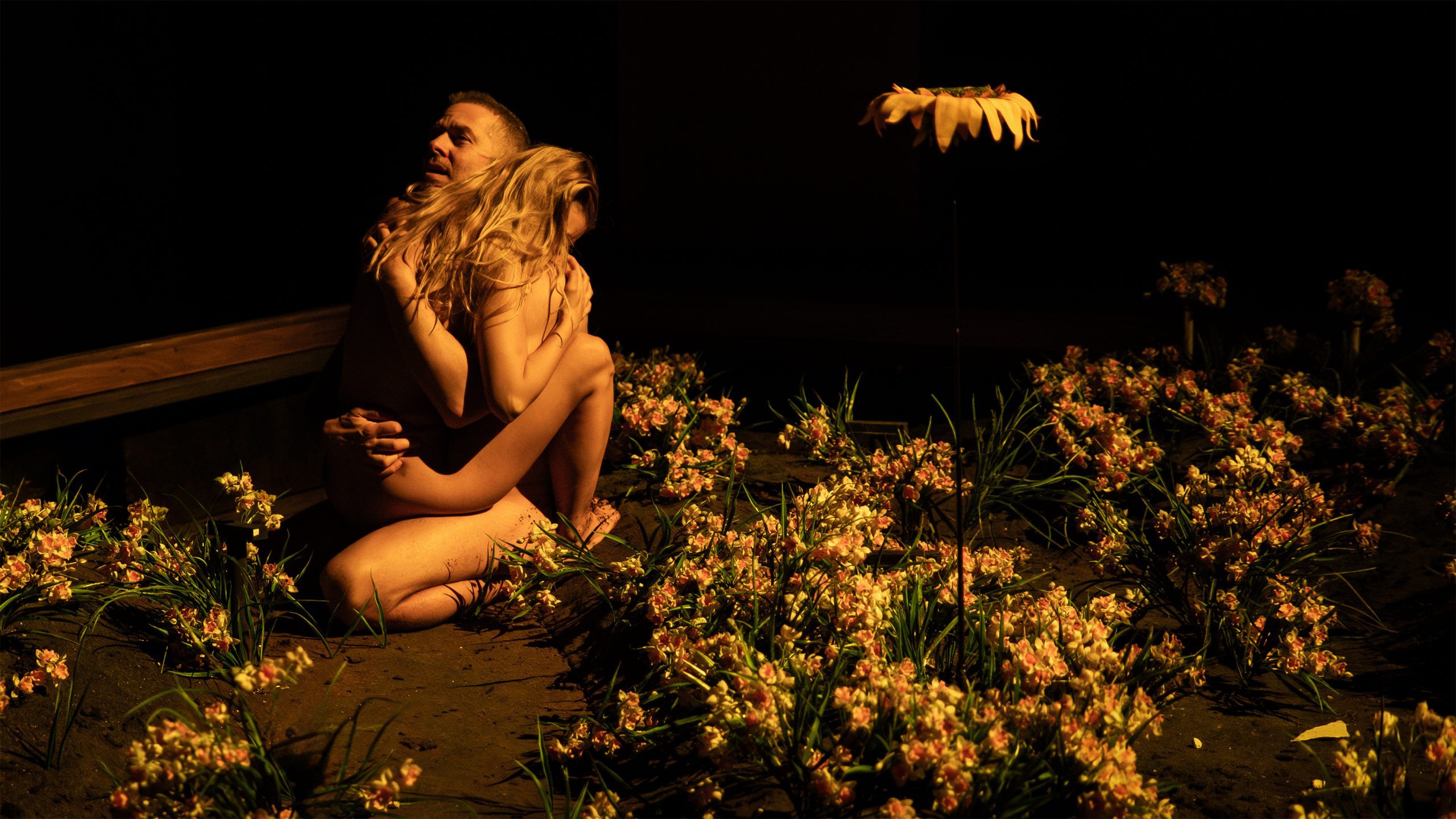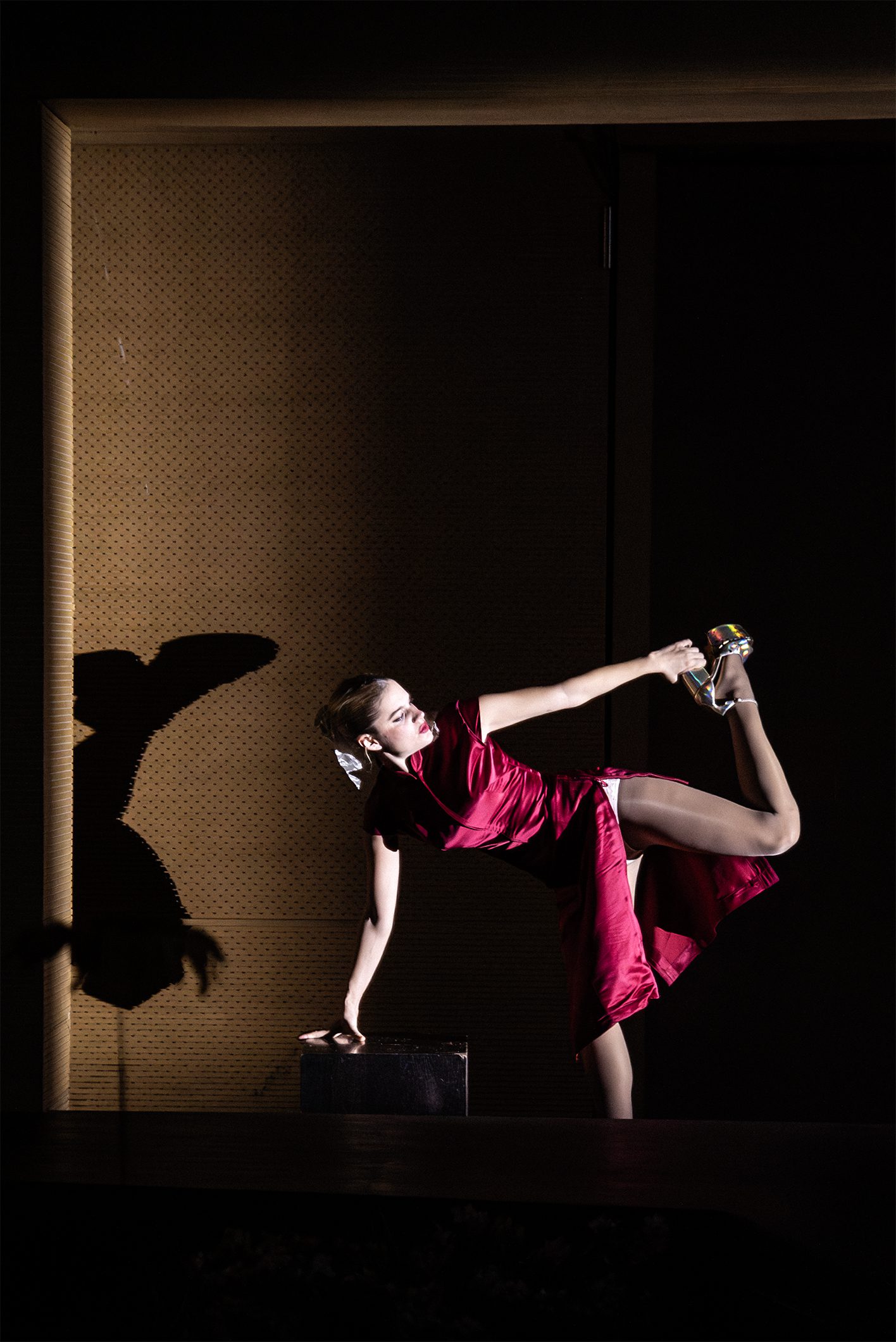 Πλάνο με τη Νατάσα Εξηνταβελώνη υπό τους φωτισμούς της Ελίζας Αλεξανδροπούλου.