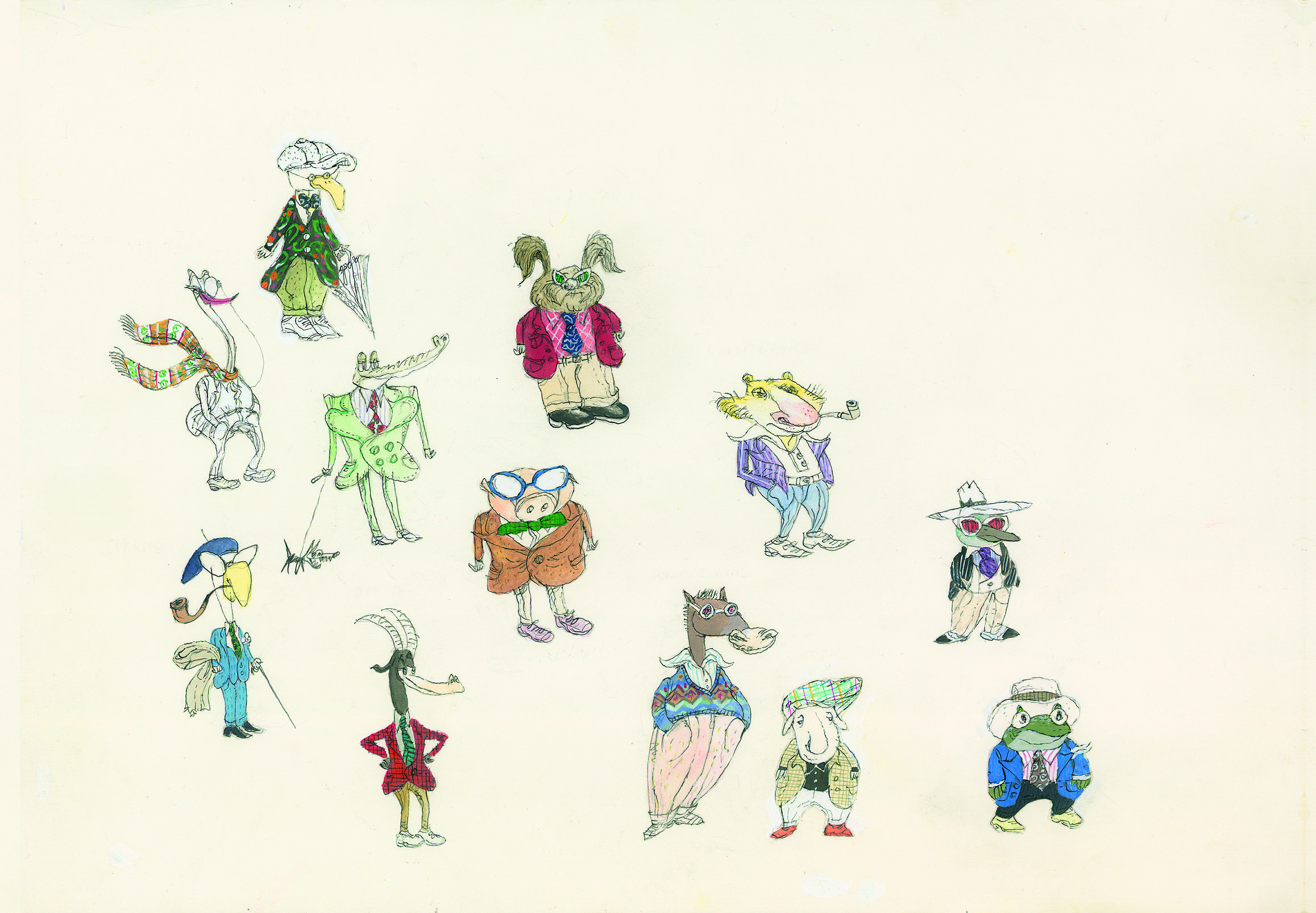 Σε αντίθεση με το φόντο, έρχονται οι ήρωες του βιβλίου: μια σειρά από ζωόμορφους χαρακτήρες, με στόχο η αφήγηση να απομακρυνθεί από το ρεαλιστικό στοιχείο και να αποδώσει την αίσθηση «του μεταλλαγμένου». Στο βιβλίο δε, υπάρχουν και πολλά σκίτσα από ‘κανονικά’ ζώα: ελέφαντες, πουλιά, γάτες, ιδιαιτέρως γάτες, τις οποίες ο Θανάσης Δήμου λατρεύει: «τις θαυμάζω απεριόριστα γιατί δεν μπορώ να τις αναλύσω. Δεν ‘σκορπίζονται’ σε αντιδράσεις. Είναι σοφά, θεία πλάσματα».