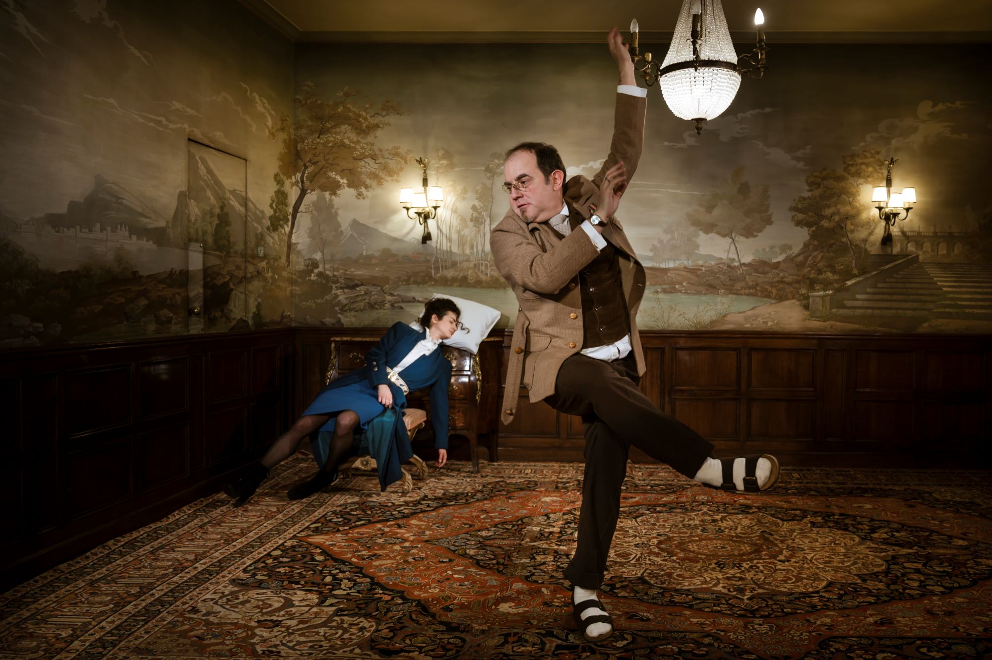 Ο Θανάσης Δήμου και ο Θανάσης Αλευράς, σε πλάνο από την σπαρταριστή “Κυρία του Μαξίμ” που ανέβηκε στο Εθνικό σε σκηνοθεσία Θωμά Μοσχόπουλου. @Πάτροκλος Σκαφίδας