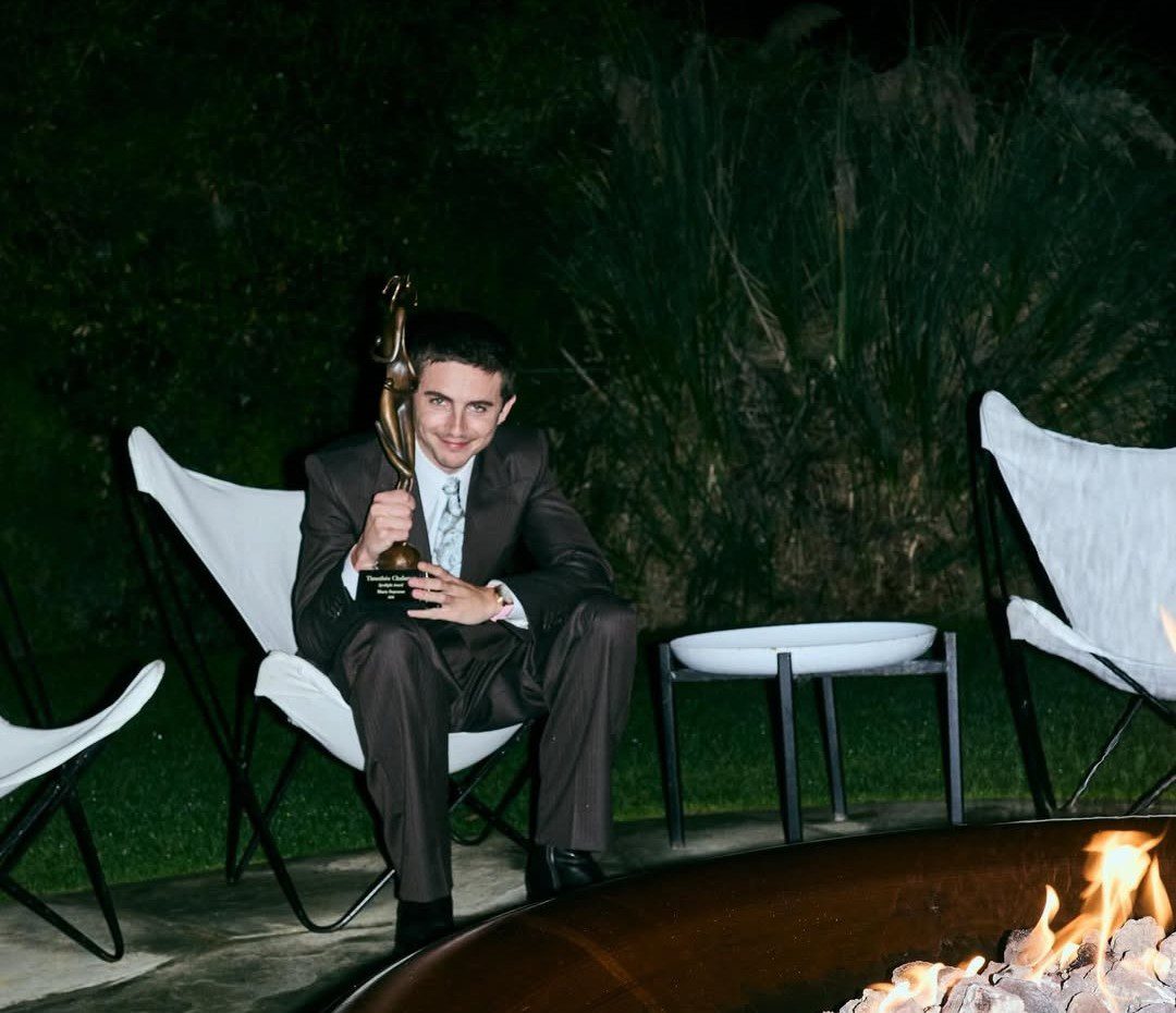 Ο Timothee Chalamet δημοσίευσε μια φωτογραφία με το βραβείο του στα social media, με τη λεζάντα “Διασκεδάζω τόσο πολύ”