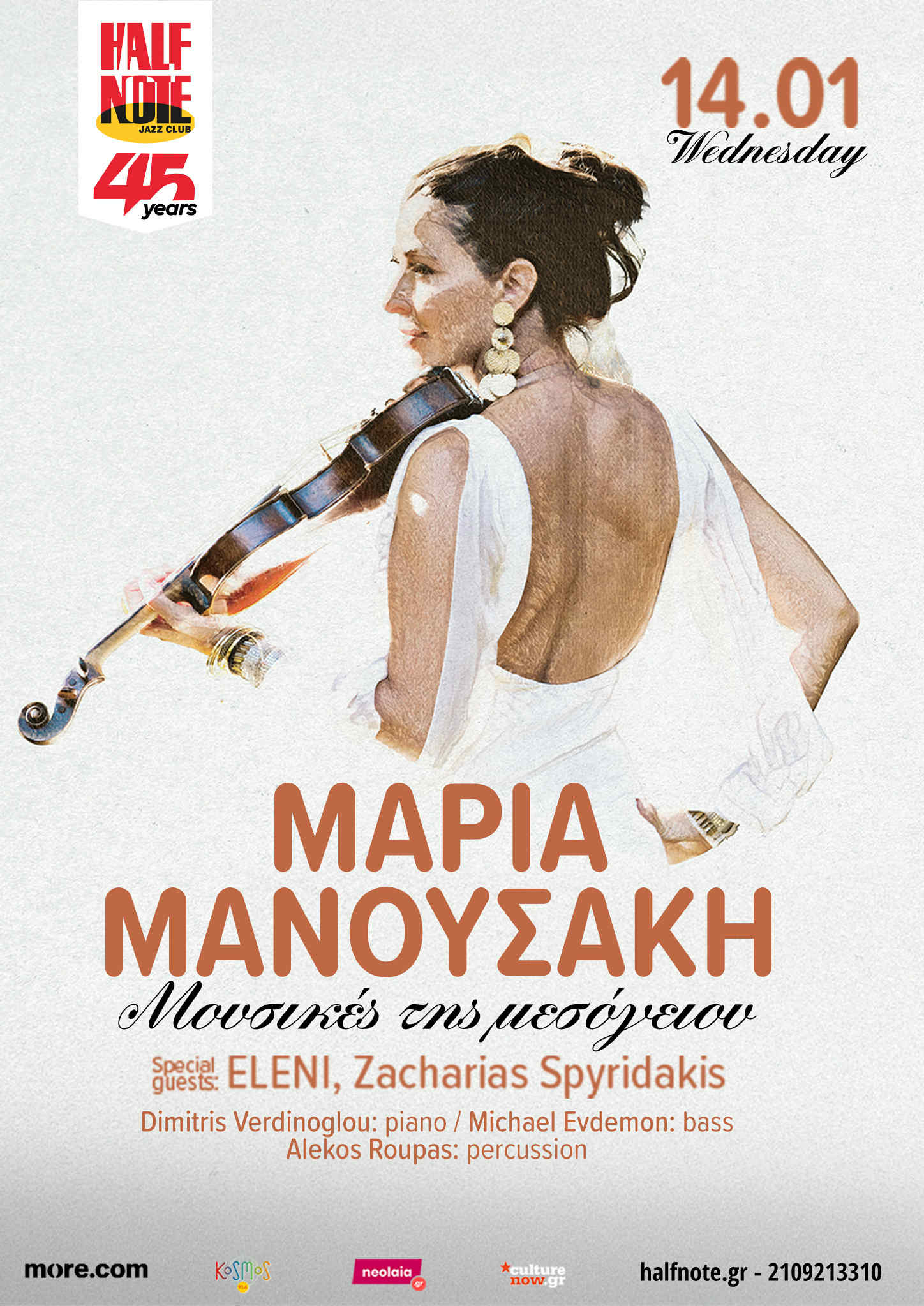 Η διεθνώς αναγνωρισμένη βιολονίστρια και συνθέτρια Μαρία Μανουσάκη επιστρέφει στην Αθήνα για μία μοναδική βραδιά στο Half Note Jazz Club, την Τετάρτη 14 Ιανουαρίου 2026.