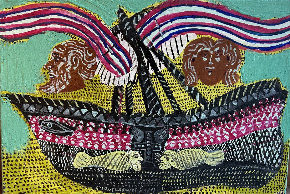 Η Γκαλερί Σκουφά με μεγάλη χαρά παρουσιάζει την ατομική έκθεση του Τάσου Μαντζαβίνου με τίτλο «Παρά θιν’ αλός». Ο Τάσος Μαντζαβίνος επιστρέφει στη γενέθλια ακτή του Φαλήρου. Δεν είναι τόπος μνήμης με τη στενή, βιογραφική έννοια, αλλά εσωτερικό τοπίο που δεν έπαψε ποτέ να τον συγκροτεί. Εκεί, δίπλα στο νερό, στα πρώτα του χρόνια, το βλέμμα μαθαίνει να μετρά τον χρόνο αλλιώς: με ρυθμούς, με επαναλήψεις, η θάλασσα γίνεται αίσθηση. Η προσωπική ιστορία του ζωγράφου εγγράφεται σιωπηλά σε αυτή τη σχέση. Ο πατέρας, ναυτικός, χάνεται νωρίς και η απουσία του λειτουργεί ως σταθερό κενό. Η θάλασσα παύει να είναι εξωτερικό στοιχείο, πλημμυρίζει με τα χρόνια τον δημιουργό και γίνεται συνθήκη ζωγραφική. Οι γνώριμες πια φιγούρες του Μαντζαβίνου — ναυτικοί, βαρκάρηδες, σώματα σε καΐκια, γυναίκες που περιμένουν, άνεμοι που ευνοούν ή διώχνουν — συνθέτουν ένα υδάτινο σύμπαν, μέσα στο οποίο στέκουν μέσα στο νερό όπως στέκεται κανείς μπροστά σε κάτι που τον ξεπερνά. Από τον Όμηρο αλιεύει την αίσθηση του ορίου: το παρὰ θῖν’ ἁλός (στην ακροθαλασσιά) ως σημείο όπου η πράξη αναστέλλεται και η μοίρα βαραίνει. Από τη λαϊκή παράδοση και τον Καραγκιόζη κρατά τη χειροποίητη μορφή, μια απλότητα που αντέχει την αδρότητα, μια παιδικότητα όχι ως ύφος αλλά ως τρόπος.