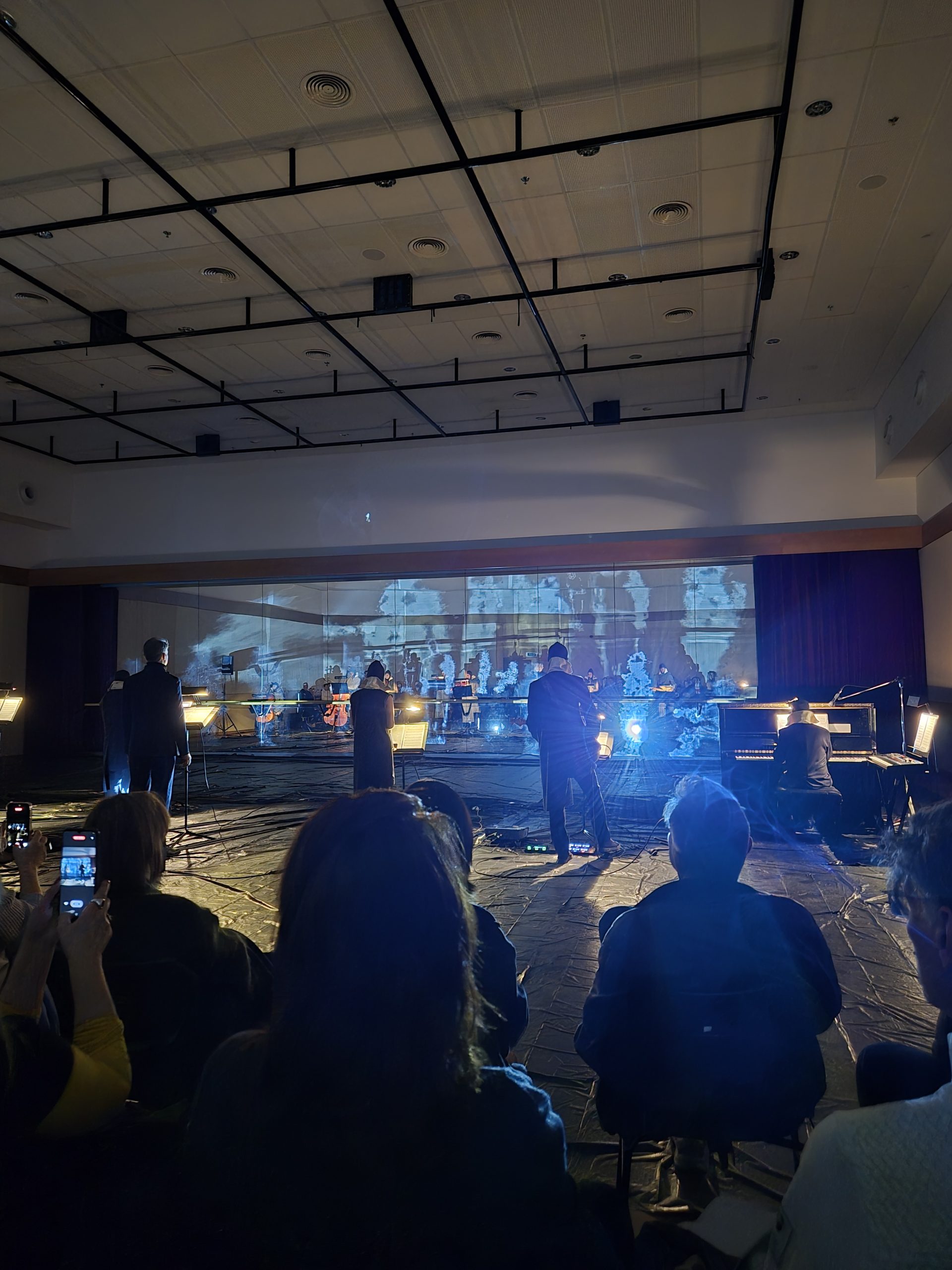 Κι εμείς, έχοντας ξεκινήσει από έναν άδειο υπόγειο χώρο με τις αντίστοιχες πρώτες μουσικές προτάσεις, έχοντας προχωρήσει στα πρώτα βελτιωμένα μουσικά βήματα παρακολουθώντας τη σταδιακή τους ωρίμανση, φτάσαμε στην ολοκληρωμένη, συνολική παρουσίαση των αποτελεσμάτων: Μέσα από ένας θεός ξέρει τι διαδρόμους και κλιμακοστάσια, βρισκόμαστε στο υπόγειο κλειστό πάρκινγκ του μεγάρου (που αναρωτιόμαστε αν είναι πραγματικό και όχι σκηνικό), το διασχίζουμε και φτάνουμε στην αίθουσα δοκιμών μπαλέτου, εκεί όπου θα ξετυλιχτεί η υπέροχη συμφωνία 37, μια μουσική έκρηξη με οκτώ μουσικούς με σάρκα και οστά – σαξόφωνο, βιολί, πιάνο/synch, βιολοντσέλο, κιθάρα, βιόλα και κοντραμπάσο.