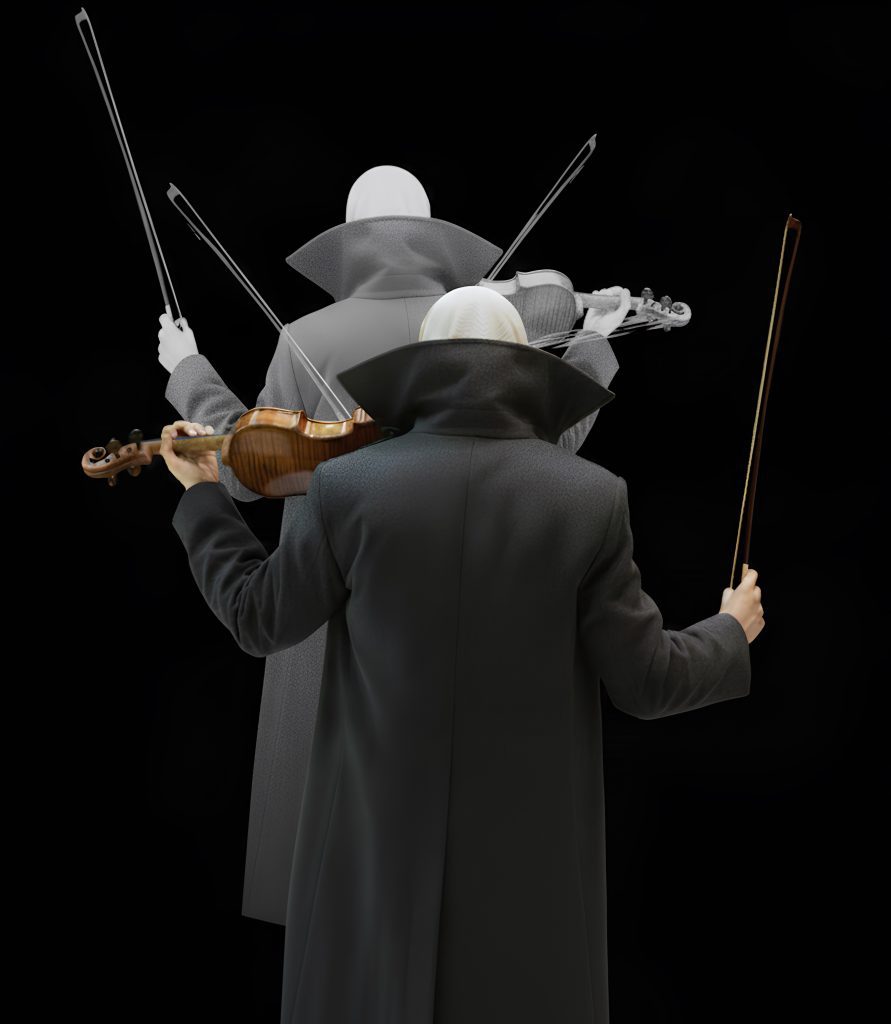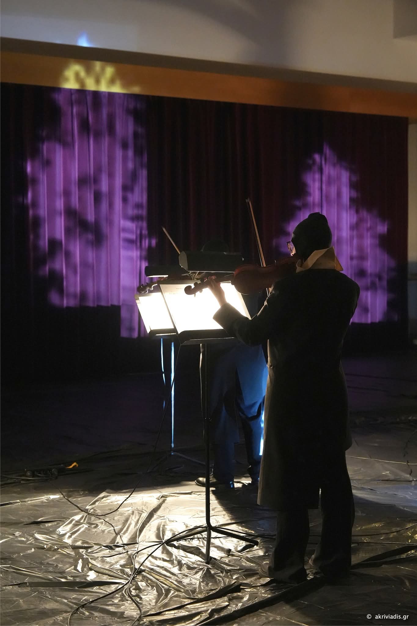 Όπως μου λέει: «Ήταν μια πρόκληση-πρόσκληση για μένα, να αφήσω οτιδήποτε με χαρακτηρίζει ως εικαστικό – που είναι κυρίως η κινούμενη εικόνα και κατ’ επέκταση η φωτογραφία και ο λόγος – και να μπλεχτώ με τα μουσικά. Αυτός ήταν ο όρος, αφού πρόκειται για ένα μουσικό residency. Θα μπορούσα να κάνω πχ ένα μουσικό βίντεο, είχε όμως μεγαλύτερο ενδιαφέρον να ξεβολευτώ και να κάνω κάτι καθαρά μουσικό. Να βουτήξω σε βαθιά νερά. Είχα την ελευθερία να δουλέψω ό,τι ιδέα είχα, επειδή όμως το Μέγαρο χαρακτηρίζεται από κλασική μουσική, ήθελα να πάω πίσω στην κουλτούρα αυτή. Όπως θα δεις, υπάρχει ένας συνδυασμός μεταξύ κλασικής και ηλεκτρονικής μουσικής. Το ίδιο το ΑΙ είχε πει ότι ‘οφείλω να μάθω από την κουλτούρα της κλασικής μουσικής, αλλά είμαι πιο μοντέρνο’. Έτσι, συνυπάρχουν το βιολί και το κουιντέτο εγχόρδων με την ηλεκτρική κιθάρα και το συνθεσάιζερ».