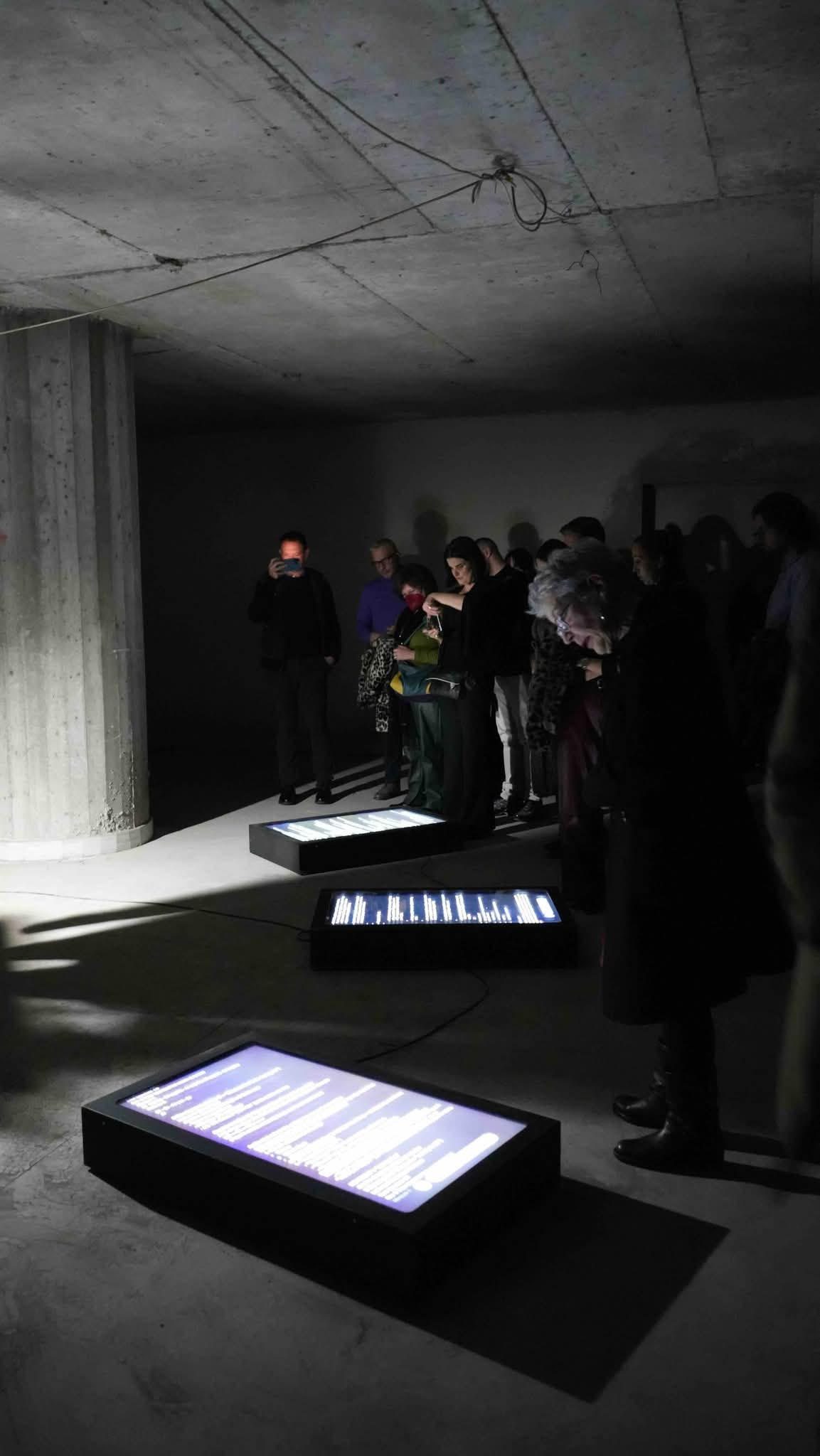 Ο κάθε χώρος αντιστοιχεί σε ένα στάδιο ζωής της ΤΝ, από την εκπαίδευση των δεδομένων μέχρι τη συνύπαρξη με τον άνθρωπο. Πρώτη πράξη, η γέννηση από ένα σκοτεινό μηδέν. Θα μπορούσε να είναι ένα υπόγειο;