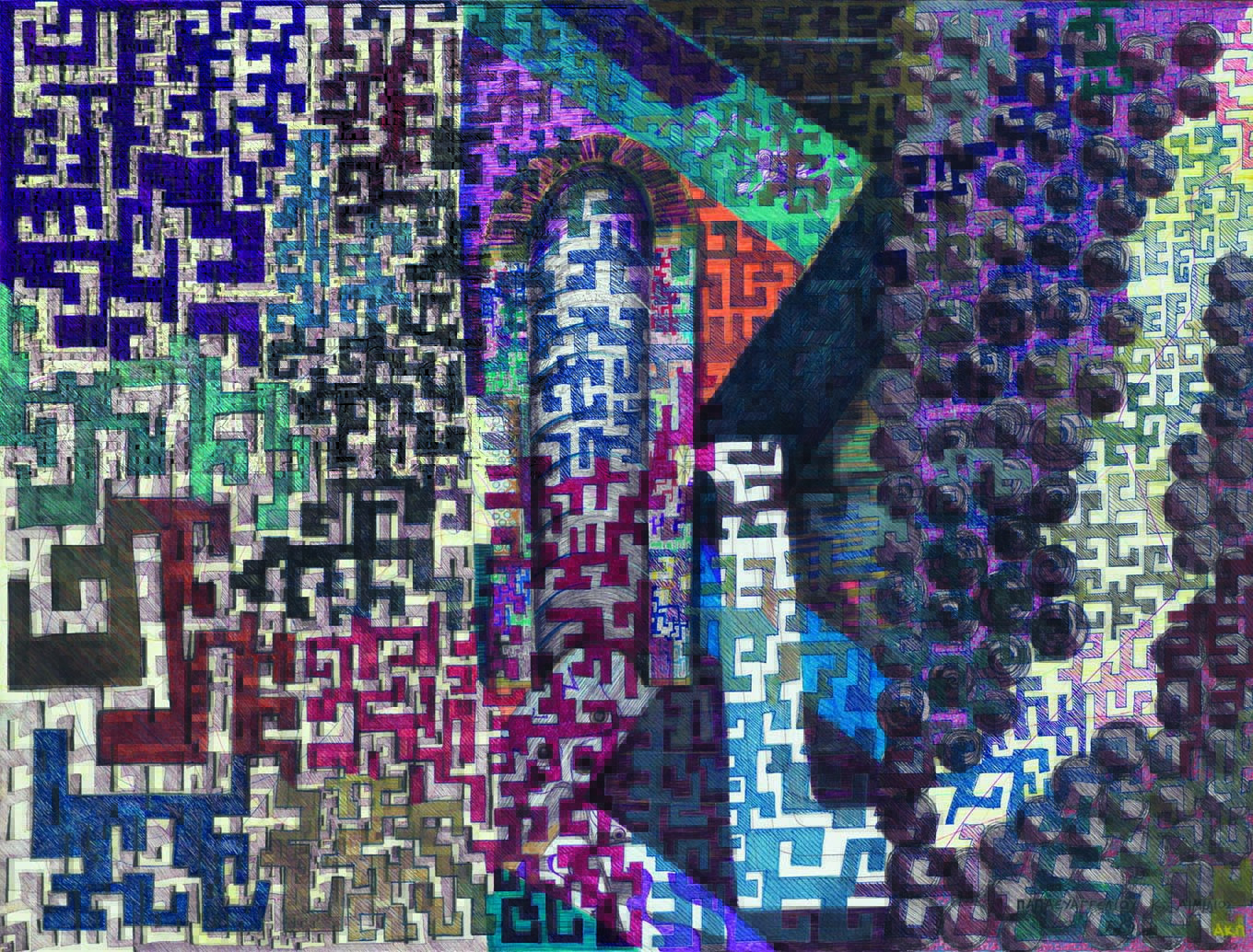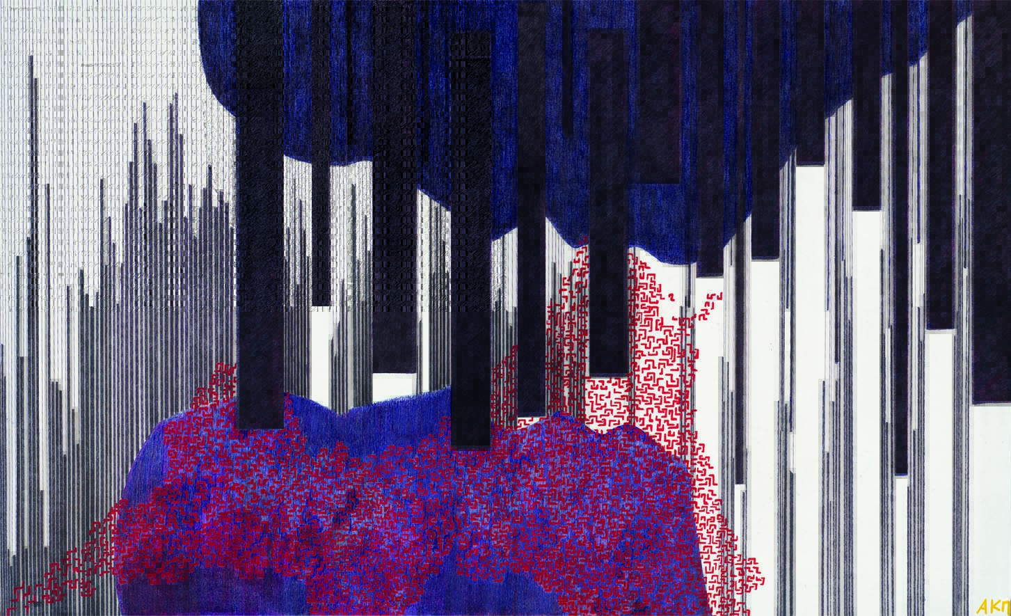 Meseona (Μεσαίωνας), 2023. Στιλό διαρκείας και πενάκι σε καμβά