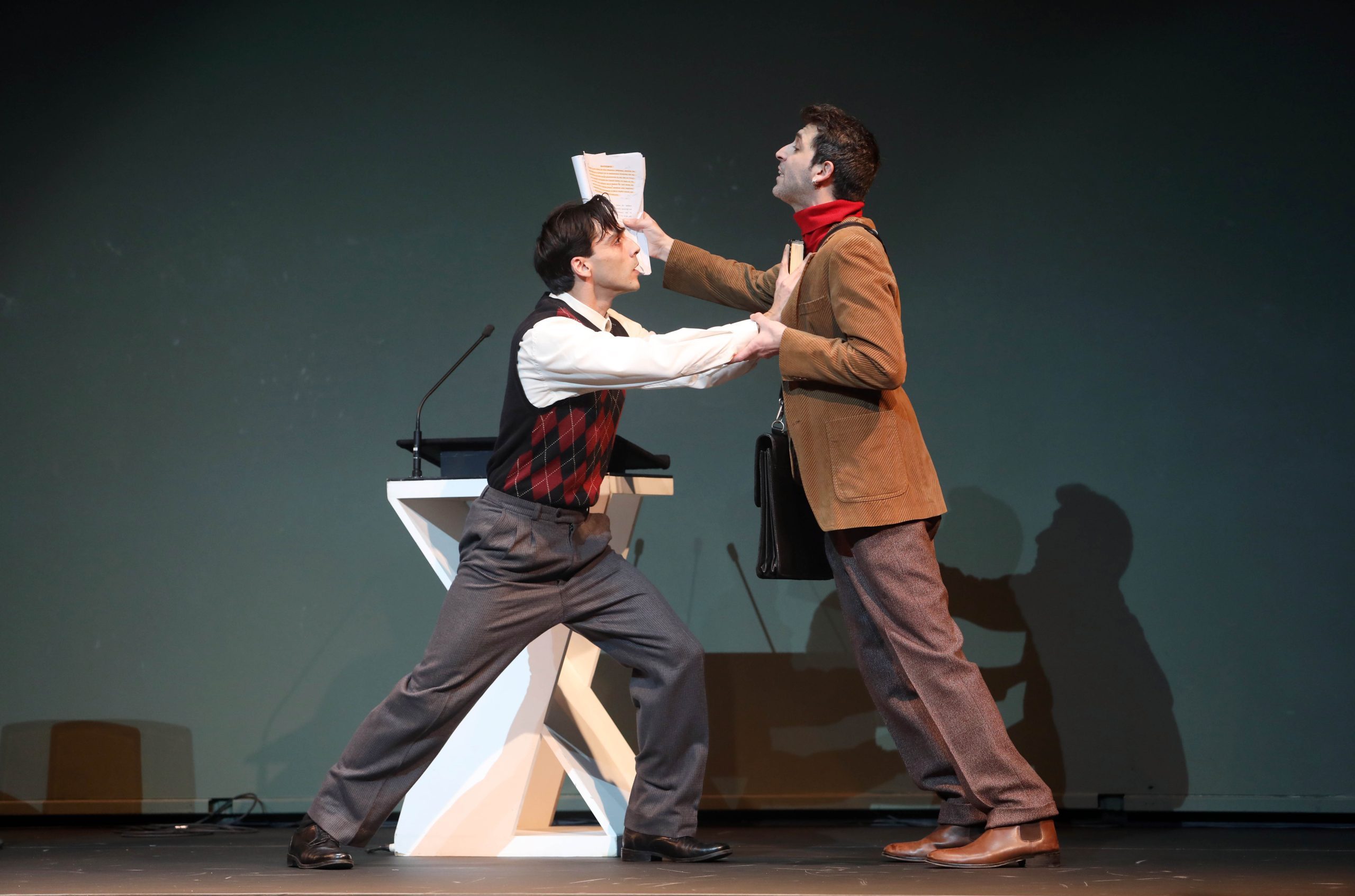 Χρησιμοποιώντας όγκους βιβλίων αντί για έπιπλα οι ηθοποιοί στη σκηνή εναλλάσσονταν με τα «διπλότυπά» τους κάτω από αυτήν, που επαναλάμβαναν φράσεις του ρόλου από μικρόφωνα στημένα μπροστά τους. Αυτό είχε ως αποτέλεσμα να μη διευκολύνεται πάντα η κατανόηση του κειμένου. Όμως αυτό μάλλον δεν ήταν το σοβαρότερο πρόβλημά του· η πραγμάτευσή του ανέδειξε και τα σημάδια που ο χρόνος άφησε πάνω του και τα δραματουργικά προβληματικά στοιχεία του. Παρόλα αυτά, η γνωριμία με ένα κείμενο ουσιαστικά άγνωστο εγγράφεται στα θετικά, και της επιλογής και της διοργάνωσης.