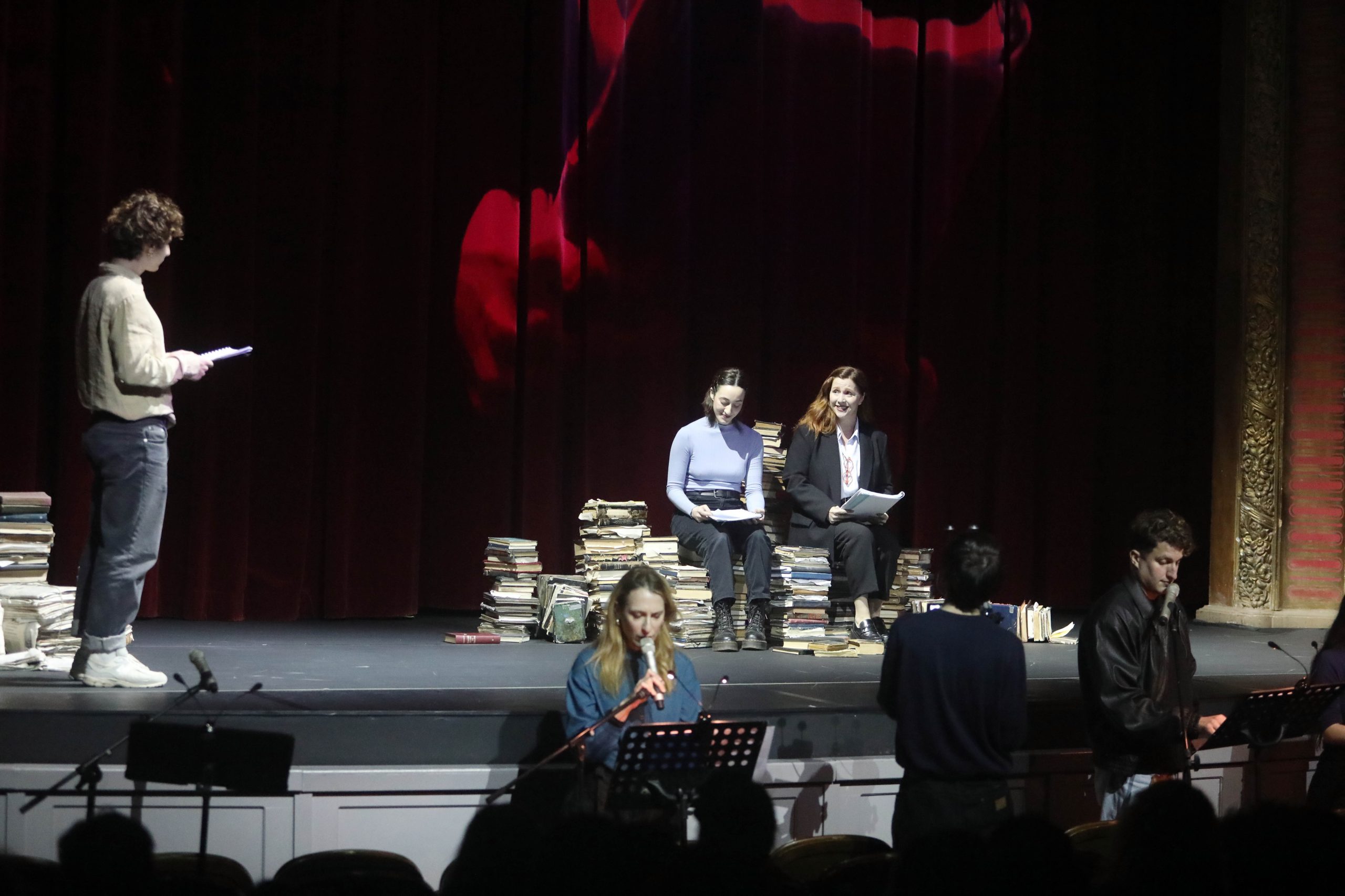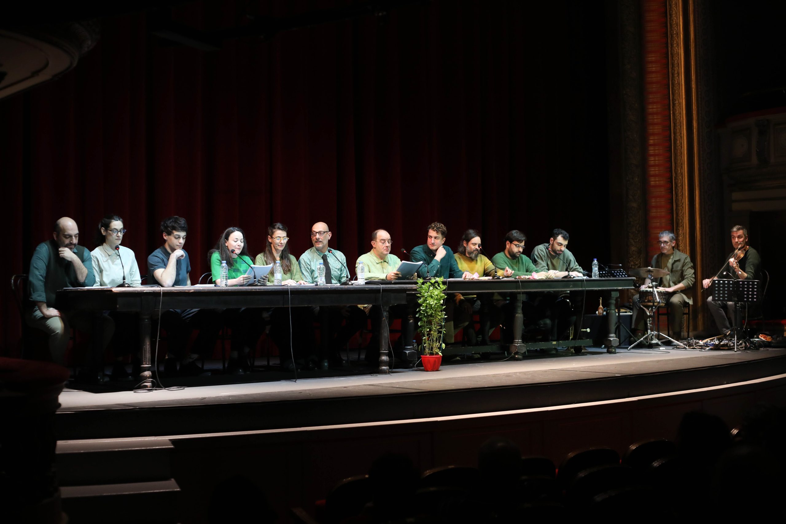 Αποκαλούνται συχνά αυτού του είδους οι παραστάσεις «ημισκηνοθετημένες», όμως τα αναλόγια που παρακολουθήσαμε στο Εθνικό Θέατρο αποτελούσαν μάλλον πλήρως σκηνοθετημένες παραστάσεις, με ελάχιστα σκηνικά ή σκηνικά αντικείμενα, και τους ηθοποιούς να διαβάζουν το κείμενο το οποίο, ταυτόχρονα, ερμήνευαν.