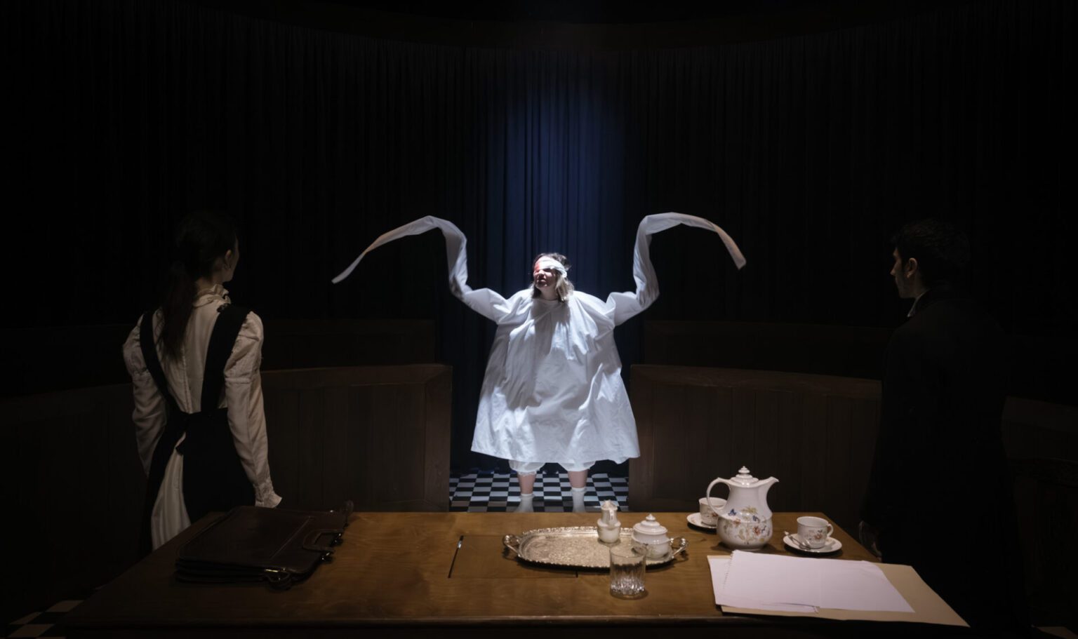Θα καταλάβω απόλυτα αν από την παραπάνω περιγραφή σάς γεννήθηκαν απορίες ή αν κάθε φορά που τελειώνατε μια πρόταση αμφισβητούσατε τι εννοούσε η προηγούμενη. Ακριβώς αυτό συνέβη και σε εμένα, βλέποντας την παράσταση. Θα τολμήσω να υποθέσω πως αυτός ακριβώς είναι και ο στόχος του δημιουργού της και σκηνοθέτη, Γιάννη Αποσκίτη. Κατά τη διάρκεια των 90 λεπτών που διαρκεί το έργο έπιασα τον εαυτό μου – σίγουρα τρεις φορές – ενθουσιασμένο, πως έπιασα το νόημα ακριβώς και μπορώ να προβλέψω την επόμενη κίνηση των ηθοποιών. Και τις τρεις αυτές φορές διαψεύστηκα πανηγυρικά στο επόμενο λεπτό.