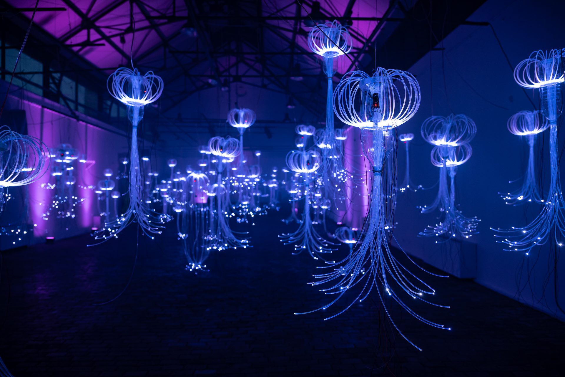 Οι φωτεινές μέδουσες αντιδρούσαν στην ανθρώπινη παρουσία, ενώ το ηχητικό περιβάλλον άλλαζε διακριτικά, ενισχύοντας την αίσθηση ότι ο επισκέπτης δεν παρατηρεί απλώς το έργο, αλλά αποτελεί μέρος του. Ταυτόχρονα, οι ίδιες οι μέδουσες είναι δημιουργία του κοινού, καθώς σε εργαστήρια που πραγματοποιήθηκαν το καλοκαίρι, ο καθένας μπορούσε να δημιουργήσει τη δική του μέδουσα από ανακυκλώσιμα υλικά.