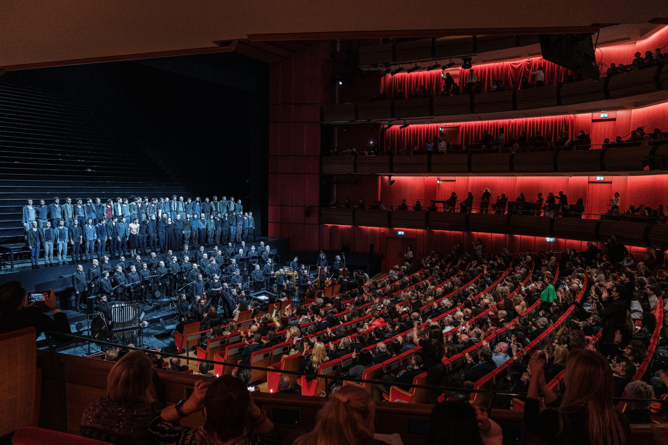 Πλάνο από την πολύλεπτη υπόκλιση που απολαμβάνουν οι δημιουργοί και συμμετέχοντες του “Ρέκβιεμ”.