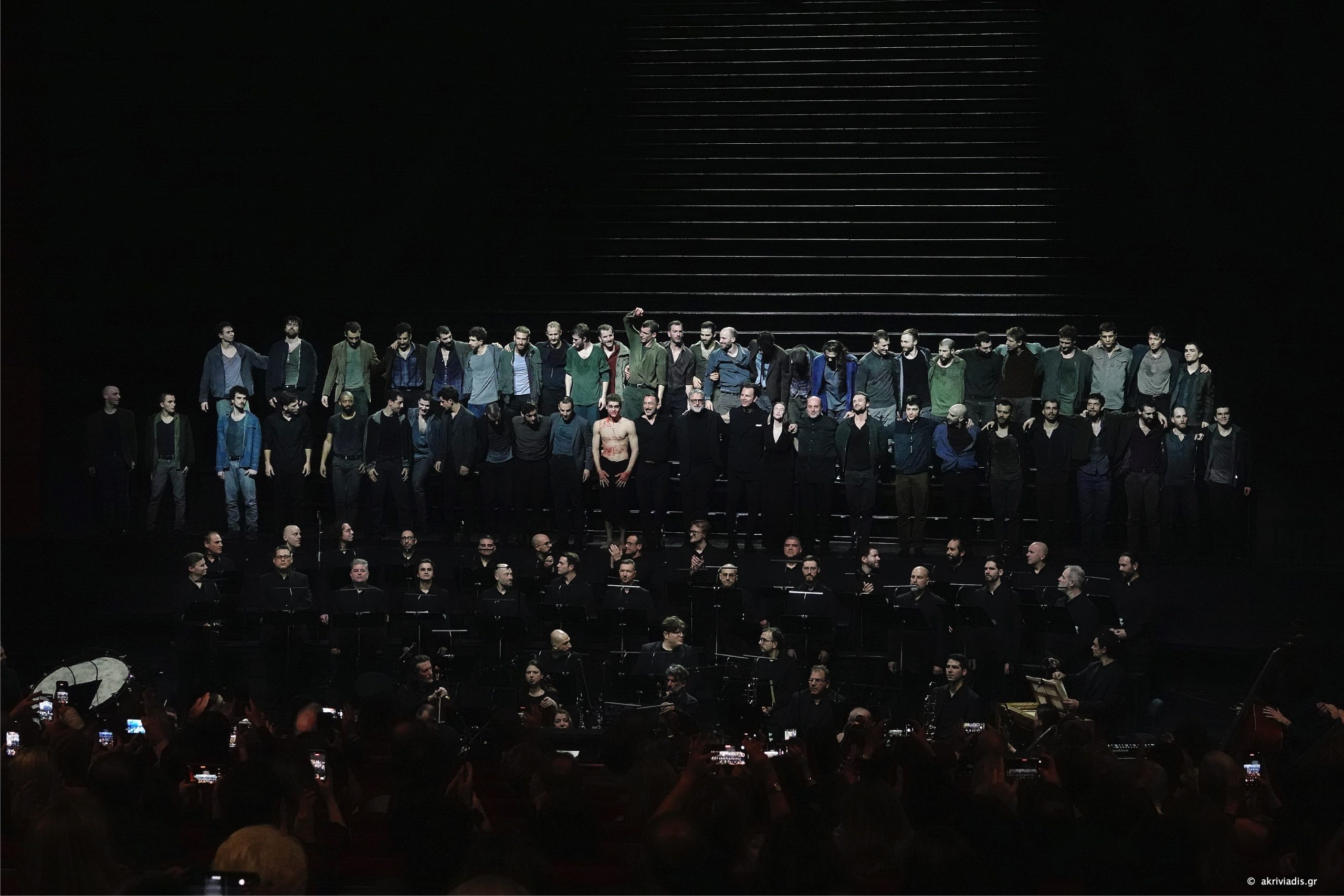 Επική μελαγχολίαΗ αλληλουχία των σκηνικών συμβάντων όπως την οραματίστηκε ο Δημήτρης Παπαϊωάννου – ένας κόσμος εικαστικής και κινησιολογικής μυσταγωγίας, όπου το βίαιο ολίσθημα προς το τέλος κοινωνεί και την ψυχική ανύψωση – είναι αναπόσπαστα συνδεδεμένη με την εξαίσια μουσική του Γιώργου Κουμεντάκη. Ως συνθέτης, ο, σε παράλληλο χρόνο Καλλιτεχνικός Διευθυντής της ΕΛΣ, φέρει το περίτεχνο στιλ του νέο-μπαρόκ, σε μια μινιμαλιστική παλέτα ρυθμών και διαστάσεων, όπου η παράκληση διαδέχεται την αγωνία, τον εφιάλτη και κορυφώνεται στο αμετάκλητο πένθος. Την ώρα που τα κορμιά σπασμένα, πέφτουν βαριά στη σκάλα του Άδη είναι που ο μαέστρος Θεόδωρος Κουρεντζής (άλλη μια παρουσία – μαρτυρία σε αυτή τη συνάντηση κορυφής) ελευθερώνοντας το εύρος των χεριών του, αλιεύει από τους σολίστ (κατά βάσει εγχόρδων) της Ορχήστρας της ΕΛΣ, τα σπλάχνα μιας επικής και συνάμα ανθρώπινης μελαγχολίας. Εδώ χτυπάει η καρδιά του «Ρέκβιεμ»: στον άνθρωπο που τελετουργείται ως σώμα και λιτανεύεται ως πνεύμα.