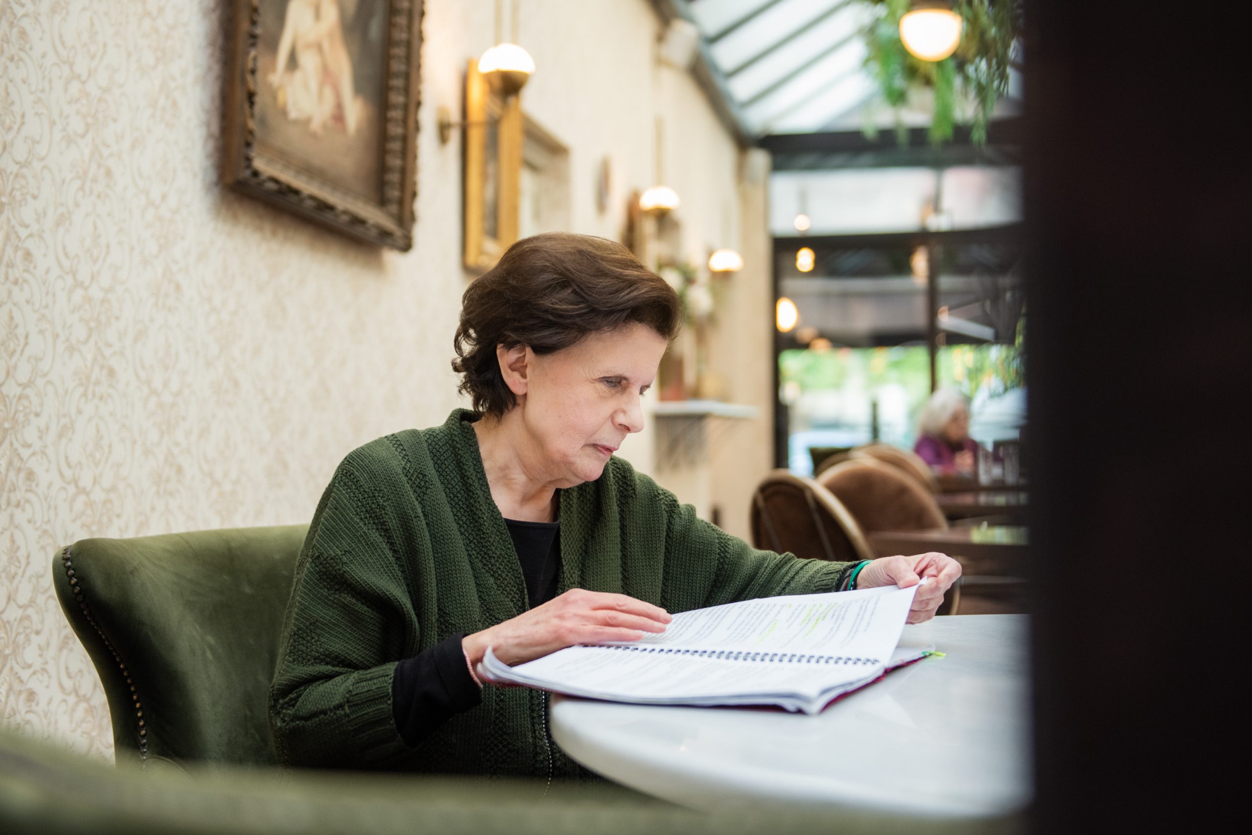 Ναι, η ηθοποιός με την 60ετή πείρα – μπήκε στο θέατρο ανήλικο κορίτσι – με το προνόμιο να ανήκει στον πυρήνα του Ελεύθερου Θεάτρου, μιας από τις πλέον ιστορικές και μαχητικές θεατρικές ομάδες της χώρας, δεν έχει παραιτηθεί από τη συστολή. Δεν είναι μεγαλόστομη, προσέχει την κάθε λέξη που θα μεταχειριστεί, μιλάει διαρκώς για τον σύντροφο της ζωής της (και πρόσφατα εκλιπόντα) Λάκη Παπαστάθη, δεν εργαλειοποιεί το μαχητικό παρελθόν της, ούτε καν την ερευνητική της περιέργεια που τη συνοδεύει μετά από τόσα χρόνια στο θέατρο και στον κινηματογράφο.