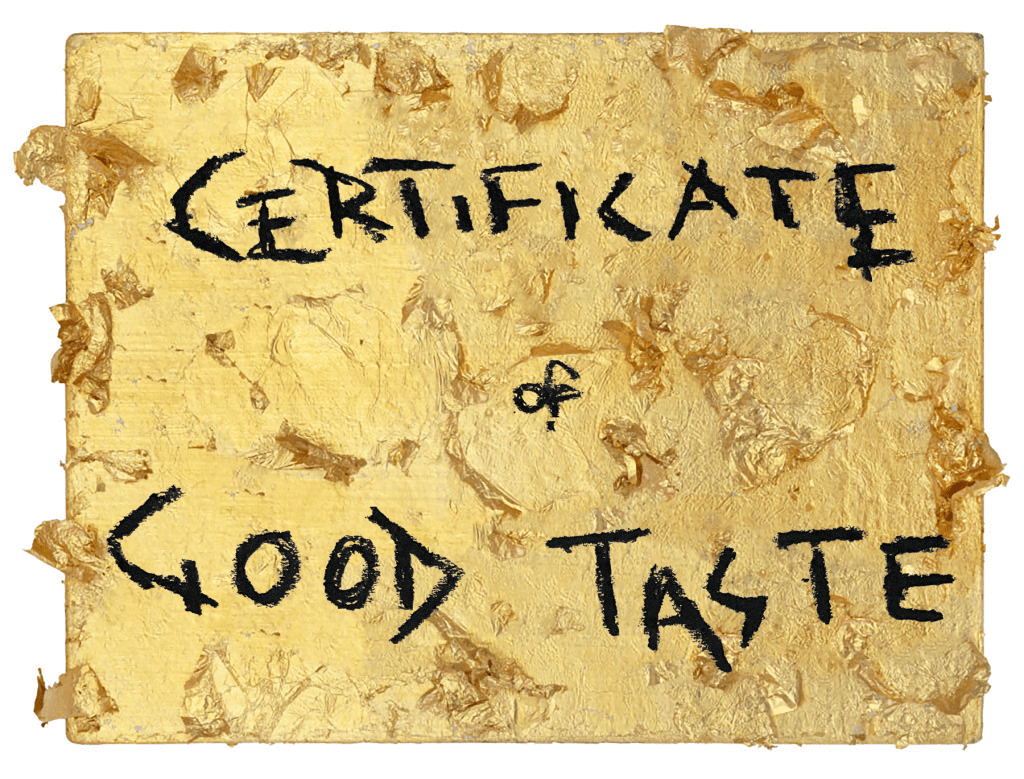 Στην έκθεση «Good Taste», η επιμελήτρια Άλια Τσαγκάρη εντοπίζει μία «αυτοαναφορική θεσμική κριτική που μετατοπίζει το ενδιαφέρον από το αντικείμενο αυτό καθαυτό στους όρους συγκρότησης, πιστοποίησης και διακίνησης της αισθητικής αυθεντίας», διευκρινίζοντας ότι «όπως τα συγχωροχάρτια (indulgences) μετέτρεπαν τη σωτηρία της ψυχής σε διαχειρίσιμο τεκμήριο, έτσι και πιστοποιητικά μεταγράφουν την αισθητική καλλιέργεια σε αποδεικτικό κοινωνικής ισχύος».