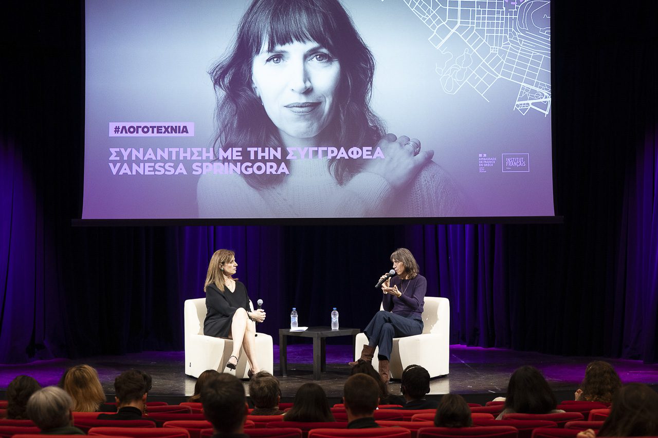 Η Vanessa Springora με τη Μία Κόλλια στην εκδήλωση του Γαλλικού Ινστιτούτου Ελλάδος. Φωτό Vangelis Patsialos