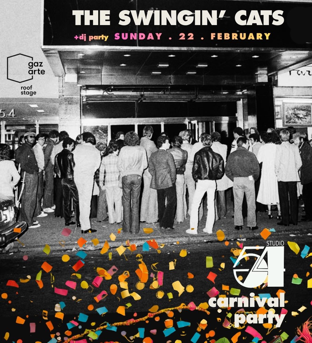 Το Gazarte διοργανώνει αποκριάτικο party εμπνευσμένο από το θρυλικό Studio 54. Η βραδιά περιλαμβάνει live set από τους The Swingin’ Cats, με swing, rock ’n’ roll και pop επιτυχίες, υπό την καθοδήγηση του Γιώργου Ζερβού. Ακολουθεί DJ set από τον JJ Pallis, με μουσική που παραπέμπει στην εποχή του Studio 54.