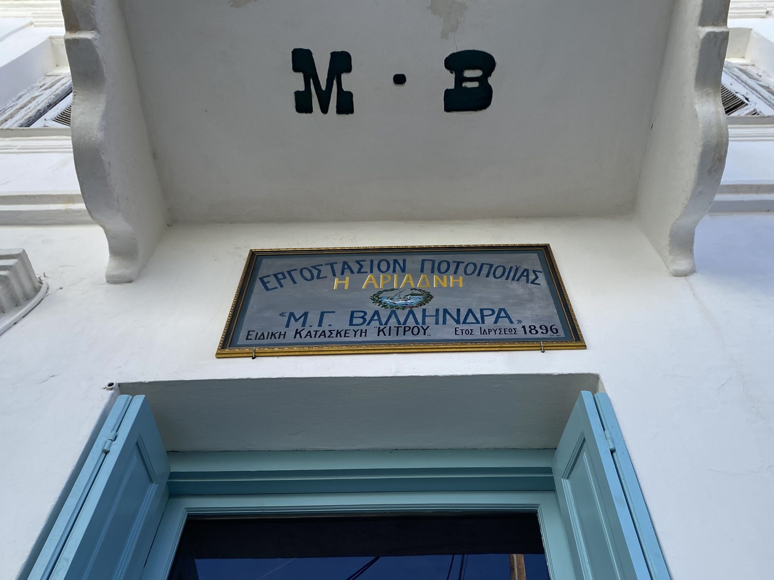 Ακριβώς απέναντι στο πλακόστρωτο μας καλωσόρισε η κυρία Ειρήνη Φραγκουδάκη, όπου ανήκει στην 4η γενιά (πλέον βρισκόμαστε στην 6η) των ποτοποιών Βαλληνδρά με το ξακουστό Κίτρο Νάξου που πλέον είναι Προστατευόμενη Ονομασία Προέλευσης (ΠΟΠ). Η ετικέτα που εδώ και 130 χρόνια κοσμεί τα μπουκάλια με το πολύ γνωστό ναξιώτικο απόσταγμα, απεικονίζει το ταξίδι του Διονύσου στο νησί. Τα τελευταία χρόνια είχε μειωθεί αρκετά η καλλιέργεια της κιτριάς στη Νάξο και πλέον οι άνθρωποι του νησιού διατελούν ενέργειες για να το ξανακαλλιεργήσουν και να ξανανθίσει η παραγωγή του. Γιατί όπως μας είπε η κυρία Ειρήνη όσο μάς ξεναγούσε στον πρώτο αποστακτήρα της εταιρίας του 1862 (που ακόμα λειτουργεί), «μέσα σε αυτά τα μπουκάλια είναι όλη η ιστορία μας».