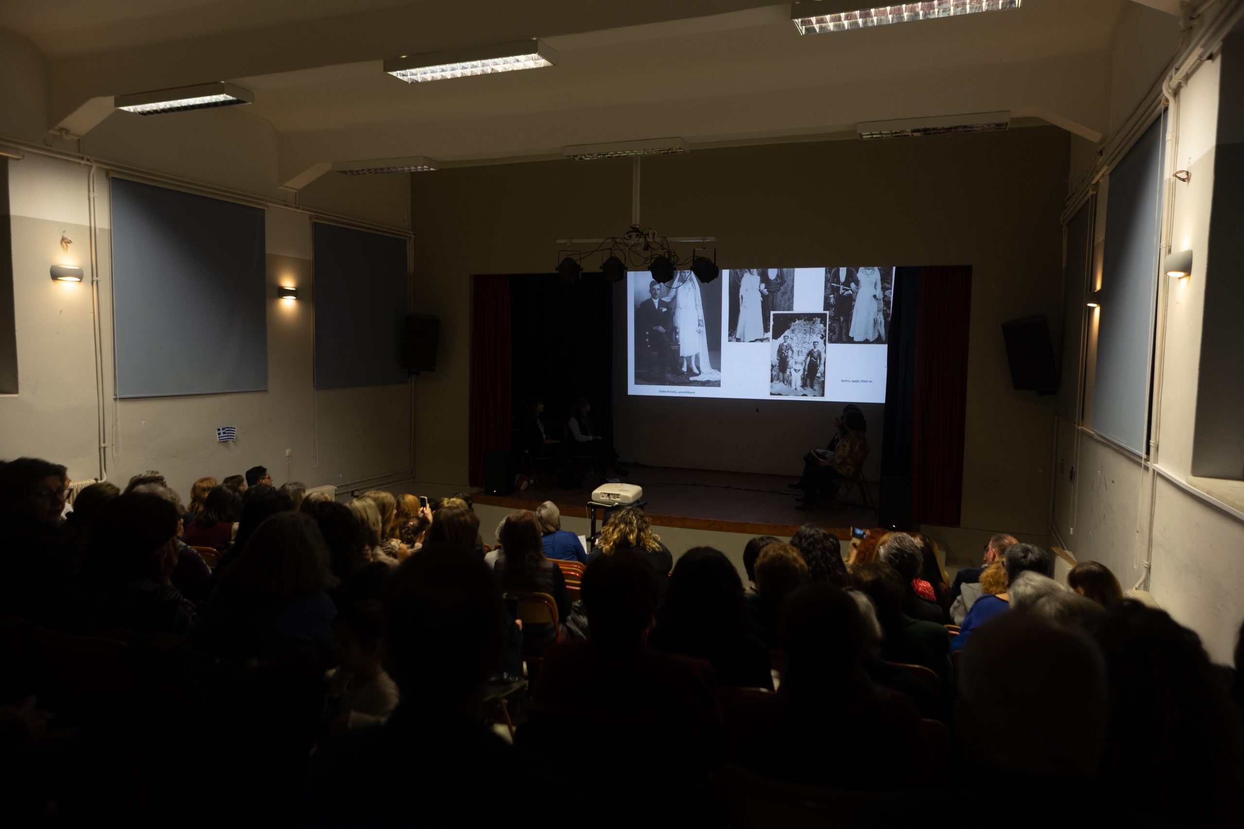 Ταυτόχρονα με την έκθεση ωστόσο πραγματοποιήθηκε και μία συζήτηση στο αμφιθέατρο του σχολείου μεταξύ της Μαρίας Πολυκρέτη, της ποιήτριας και αρχιτέκτονος Φοίβης Γιαννίση, της προέδρου του ΣΕΝ Βικτώριας Καλαντζοπούλου και της επιμελήτριας του Μουσείου Μπενάκη Ξένιας Πολίτου. Υπό τον συντονισμό της δημοσιογράφου και επιμελήτριας Έφης Φαλίδα, οι πέντε γυναίκες μίλησαν για το πώς ένα τόσο μικρό αντικείμενο όπως είναι το νυφικό αυτό μπούστο μπορεί να μας διδάξει πράγματα για την τοπική ιστορία αλλά και για την πορεία της ιστορίας της μόδας σε όλη τη χώρα. Πώς το πάνω μέρος της φορεσιάς ενός 14χρονου κοριτσιού που παντρευόταν δύο αιώνες πριν κρύβει μέσα του τη φύση της ίδιας της γυναίκας, τις επιλογές που κλήθηκε να πάρει, τις γνώσεις που διεκδίκησε και τη σημασία που είχε αυτό το κομμάτι ύφασμα για όσες κατόρθωσαν να το φορέσουν μέσα στα χρόνια. Οι κατακτήσεις, οι κακουχίες και η ιστορία.
