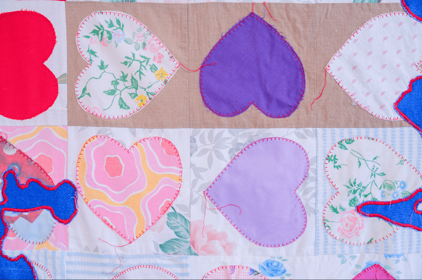Το έργο “True Blue” με τον χάρτη της Ελλάδας κατασκευασμένο από σεντόνια που έχουν δωρίσει γυναίκες στην καλλιτέχνιδα, με την προϋπόθεση ότι έχουν ξεκουραστεί πάνω σε αυτά και έχουν ονειρευτεί έναν κόσμο ισότητας και δικαιοσύνης.