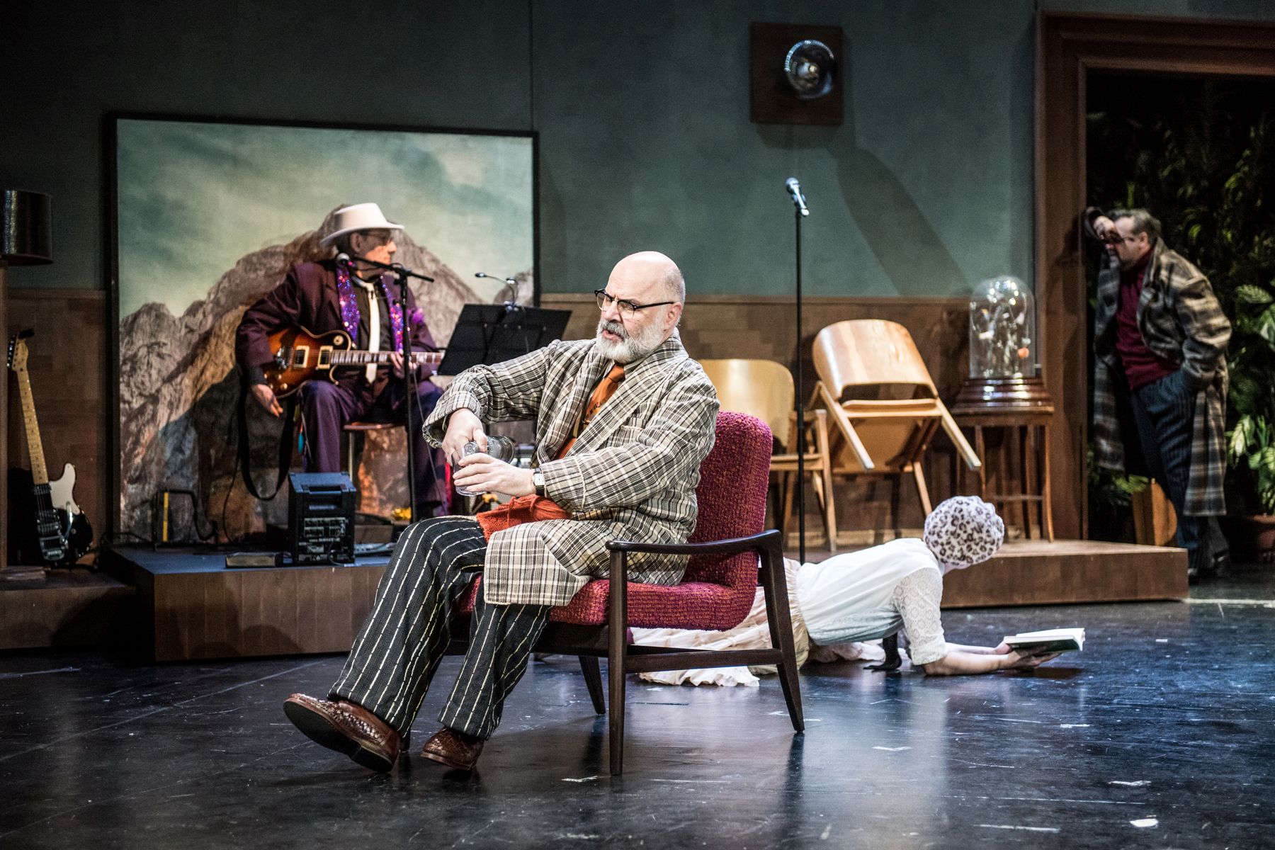 Παρακολούθησα την παράσταση εν τη απουσία του Μπλέιν Ρέϊνινγκερ, συνθέτη της μουσικής και ερμηνευτή των τραγουδιών της παράστασης. Ομολογώ πως παρά την καθοριστική έλλειψη του από τη σκηνή, η μουσική του – μελαγχολική, ατμοσφαιρική, κάτι ανάμεσα σε road movie του Ντέιβιντ Λιντς και του Βιμ Βέντερς – είναι από τα καλύτερα soundtrack παραστάσεων που έχουν γραφτεί την τελευταία δεκαετία στο θέατρο. Και δεν μιλάμε για μουσικά θέματα αλλά για επτά σύντομα τραγούδια, τους στίχους των οποίων υπογράφει ο ίδιος μαζί με τον σκηνοθέτη Γιάννη Χουβαρδά. Ένα μουσικό αριστούργημα και μαζί ένα πολύτιμο δραματουργικό στήριγμα που, στη διάρκεια ανάρρωσης του Ρέϊνινγκερ, ερμήνευσαν σπουδαία και με θεατρικό τόνο, οι ηθοποιοί της παράστασης.