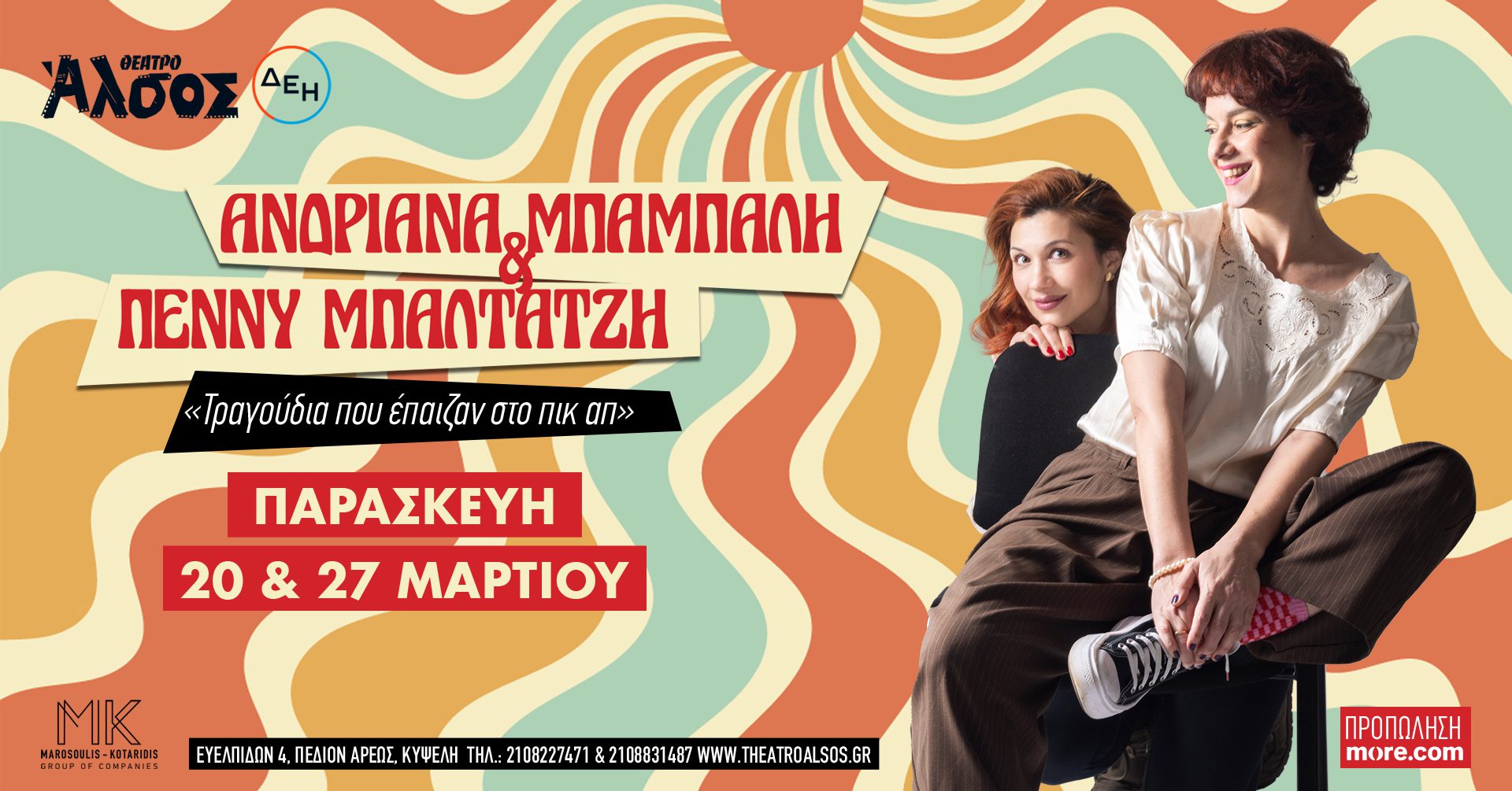 Η Ανδριάνα Μπάμπαλη και η Πέννυ Μπαλτατζή, συναντιούνται επί σκηνής σε μια μουσική παράσταση–ταξίδι στον χρόνο με τίτλο «Τραγούδια που έπαιζαν στο πικ απ», αφιερωμένη στη χρυσή δεκαετία του ’70 και στο ελληνικό μελωδικό τραγούδι.