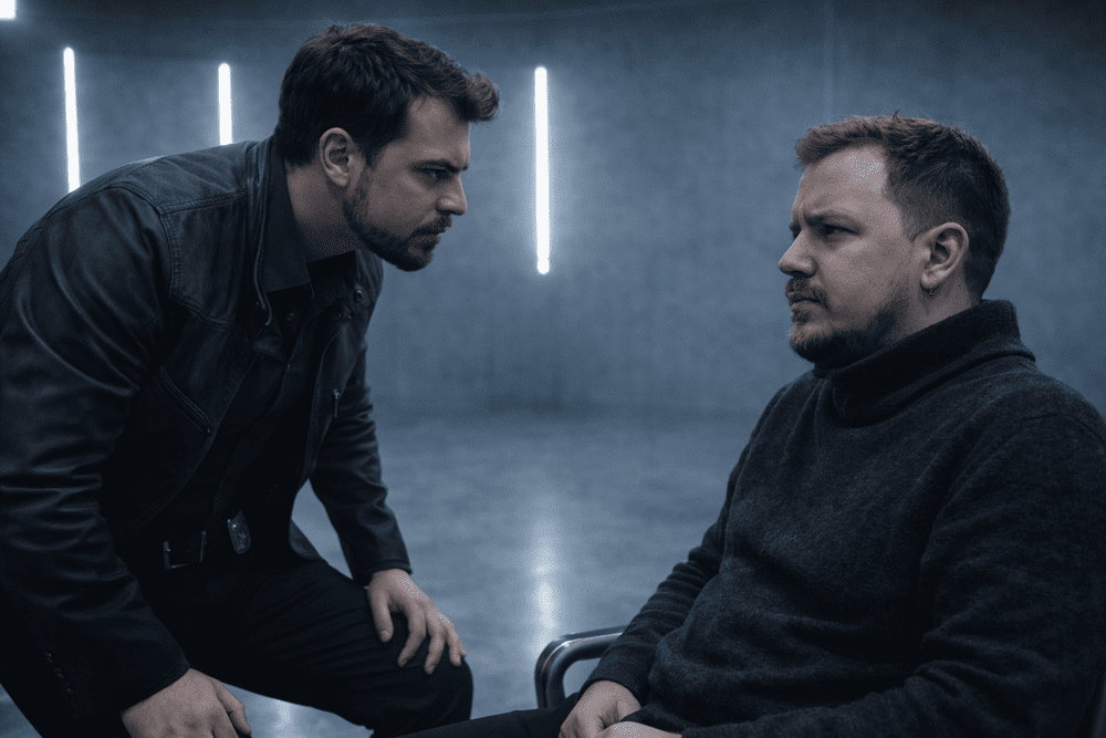 Η ιστορία ξετυλίγεται μέσα από μια καταιγιστική ανάκριση. Ένας αποφασισμένος ντετέκτιβ έρχεται αντιμέτωπος με τον δημιουργό αυτού του εικονικού κόσμου και έναν τακτικό «επισκέπτη» του, σε μια μονομαχία που κόβει την ανάσα.