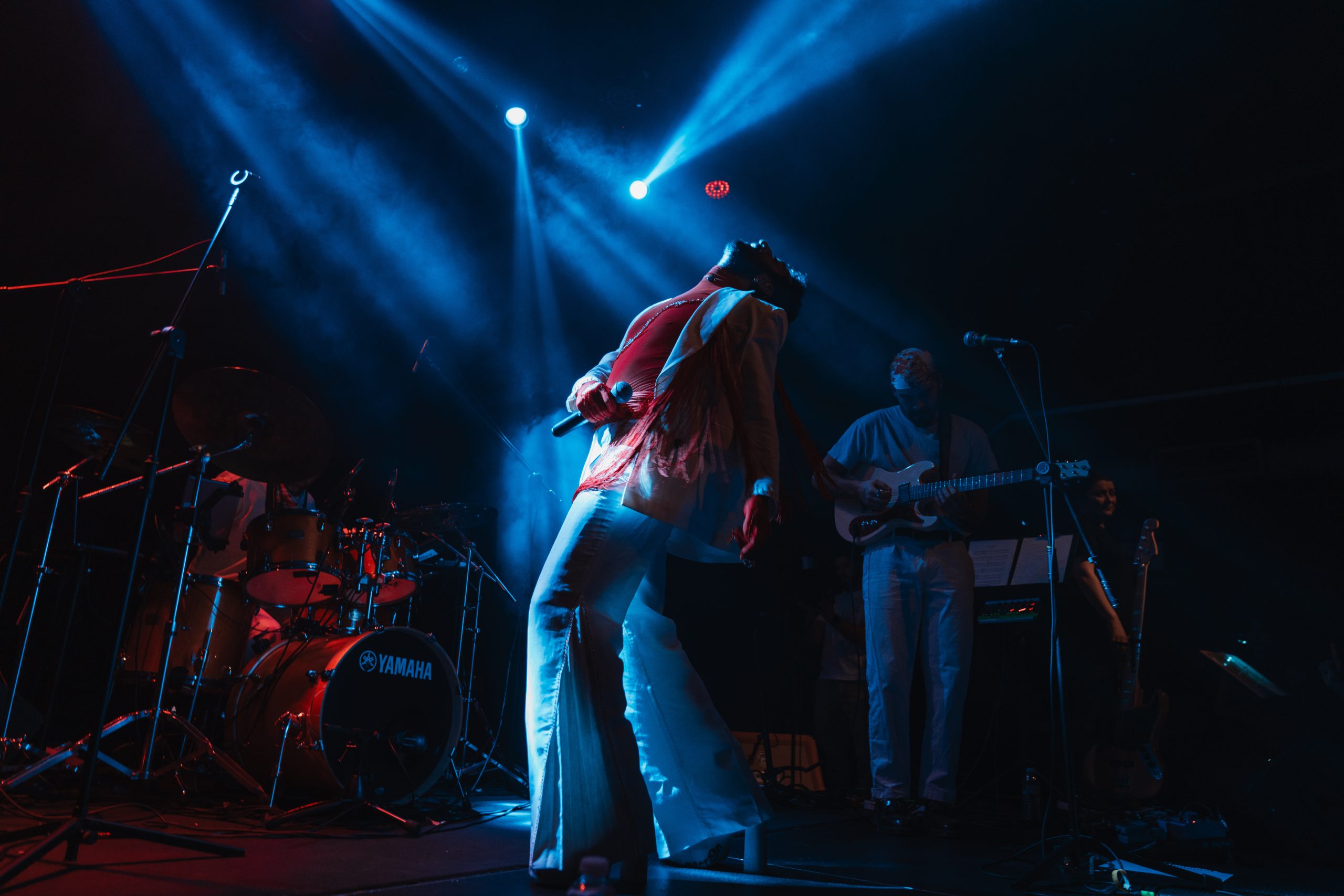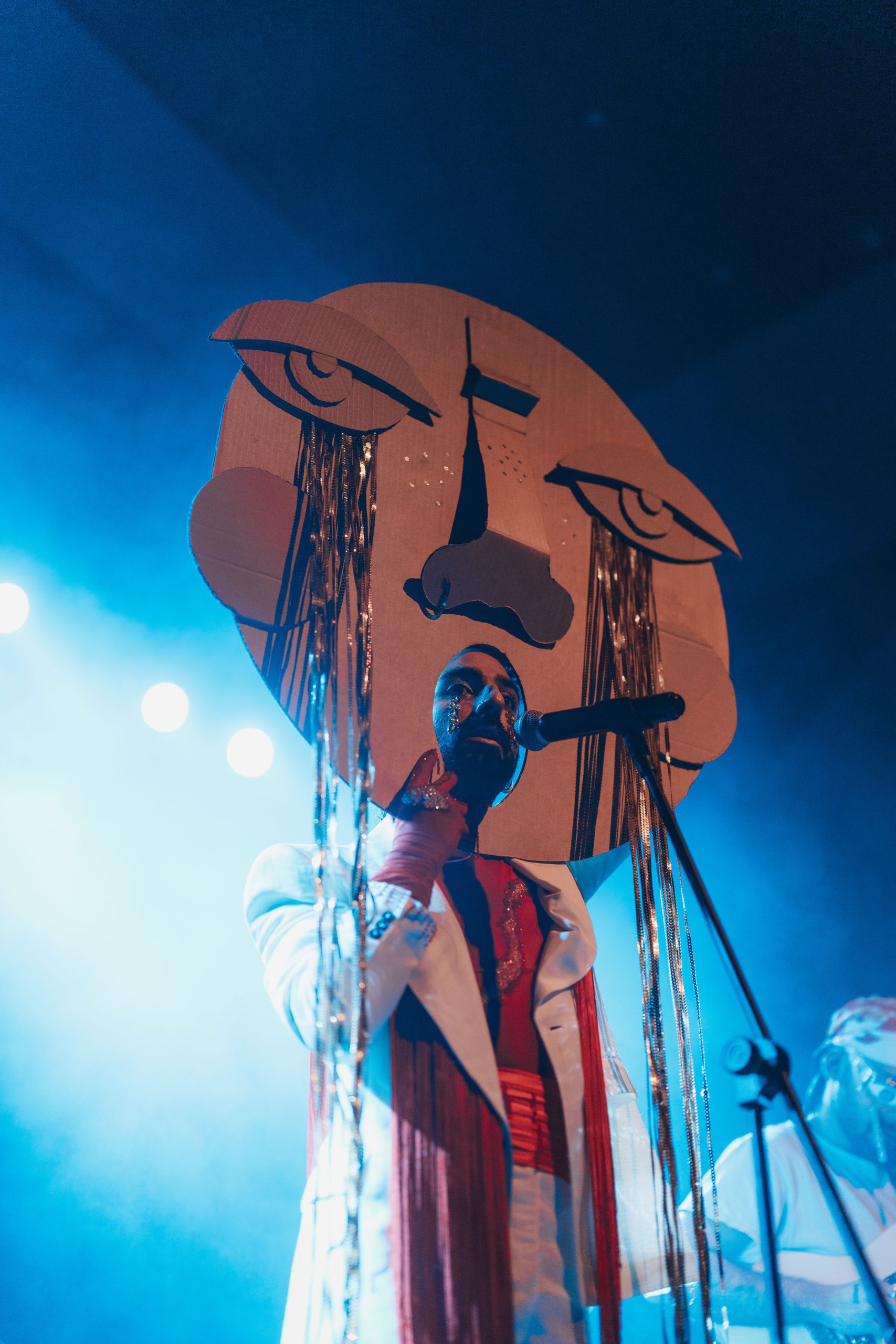 Μετά από λίγη ώρα και ενώ ήδη είχαμε ζεσταθεί και πλέον ο χώρος είχε γεμίσει, έκανε στη σκηνή την εμφάνισή του ένα χάρτινο γλυπτό πρόσωπο με δάκρυα που λάμπουν και μία εξαιρετική φωνή να το συντροφεύει. Η είσοδος του Ody Icons στη σκηνή ήταν κάτι με το οποίο ήμουν γνώριμη εξαιτίας του TikTok, αλλά δεν την είχα ποτέ αντικρίσει από κοντά. Αυτό το τεράστιο πρόσωπο, με το ανοιχτό στόμα, που κρατάει ο Ody στην αρχή του live του, ίσως είναι μία πτυχή του ίδιου, ίσως μία καρικατούρα, ίσως πάλι να είναι η μάσκα πίσω από την οποία κρυβόμαστε για να μπορέσουμε να είμαστε ο εαυτός μας. Αφού λοιπόν έκανε είσοδο με ένα κλασικό, ήρεμο κομμάτι, το γύρισε σε δευτερόλεπτα σε Καίτη Γαρμπή και το πλήθος αναθάρρησε. Κάπου εκεί εγώ κατάλαβα πως θα περνούσαμε πάρα πολύ ωραία και αυτό το βράδυ.