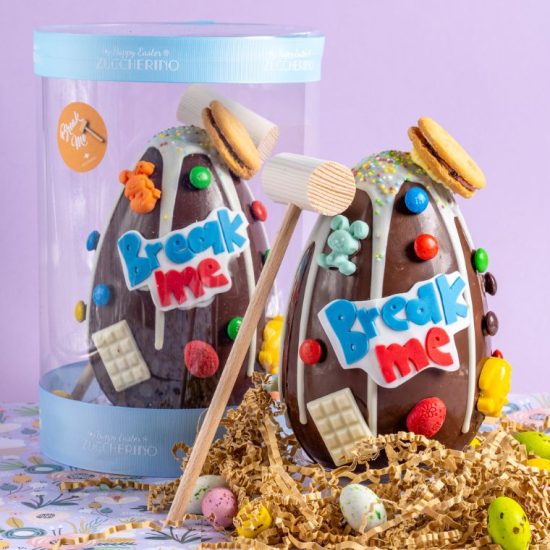 Ίσως να υπάρχει κάτι που τα παιδιά αγαπούν περισσότερο από τη σοκολάτα… και αυτό είναι οι εκπλήξεις. Με αυτή τη σκέψη δημιουργήθηκαν τα mystery eggs με τα ξύλινα σφυράκια, τα οποία μπορείτε να χρησιμοποιήσετε για να σπάσετε το σοκολατένιο αυγό και να ανακαλύψετε τις λιχουδιές που κρύβονται στο εσωτερικό του. Τα πασχαλινά αυγά που φωνάζουν “Break Me” αποτελούν μια διαδραστική εμπειρία, έναν θησαυρό που θα ήθελε να εξερευνήσει κάθε παιδί. Παράλληλα, το Zuccherino προσφέρει σοκολατένια αυγά με μοντέρνα σχέδια που καλύπτουν κάθε γούστο, από minimal αισθητική μέχρι και custom σχέδια από ζαχαρόπαστα.