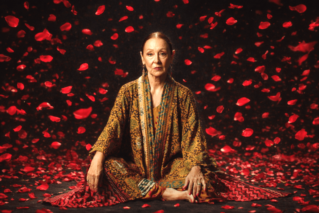 Στο κέντρο της παράστασης η Λυδία Φωτοπούλου, που εμφανίζεται κινηματογραφημένη σε ρόλο εικονικής (virtual) αφηγήτριας λειτουργεί ως ο άξονας που συνδέει τις διαφορετικές στιγμές της αφήγησης.