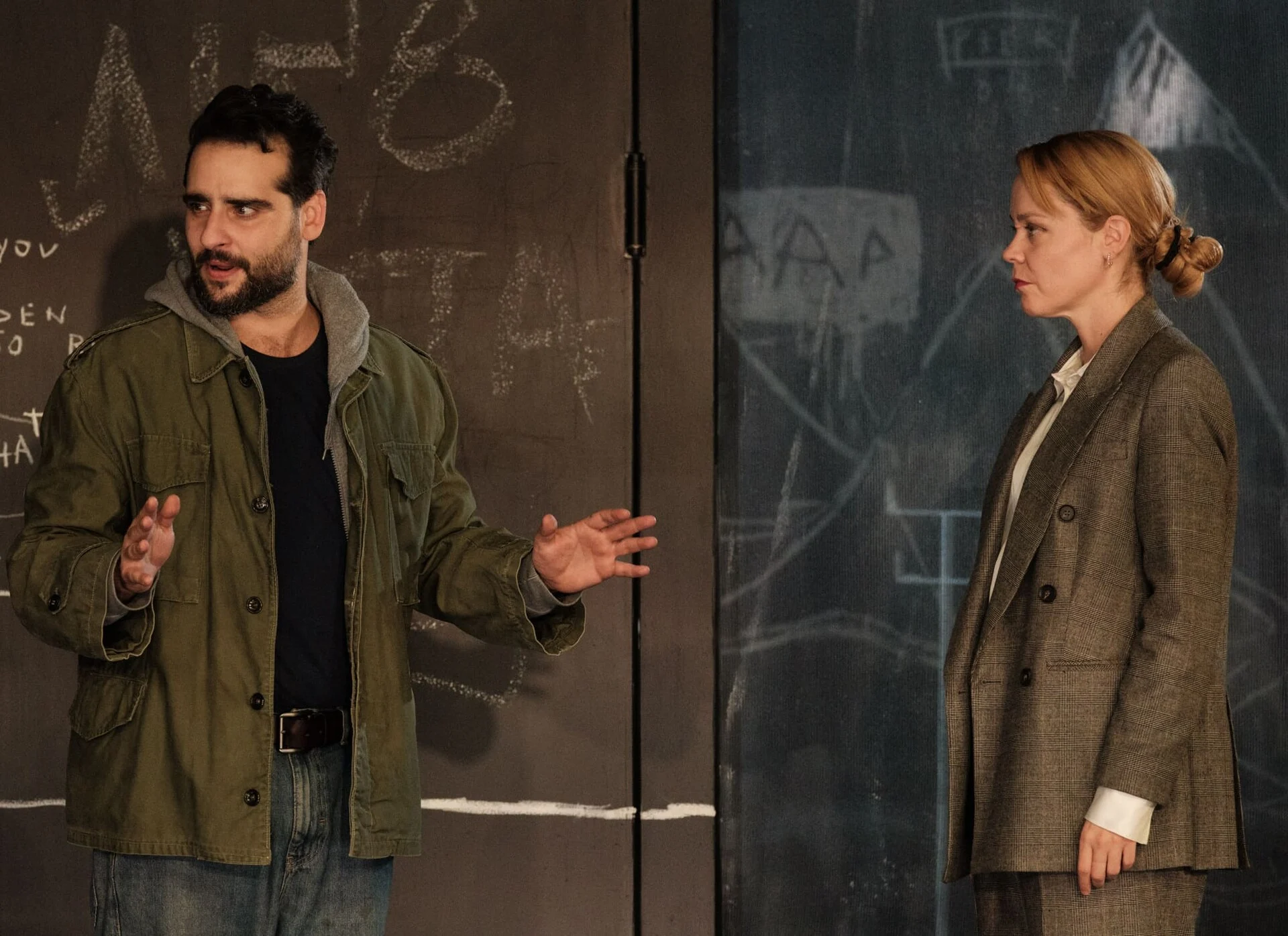 Η παράσταση ξεκινά με μια νεαρή παρέα που μοιράζεται τις ανησυχίες και τα προβλήματα της καθημερινότητας, κάνοντας πρόβα μερικά τραγούδια. Ένα από αυτά, που στην αρχή δεν συνέδεσα με την πλοκή, μου “κόλλησε” στο μυαλό. Το τραγούδι επαναλάμβανε τον στίχο “Which side are you on?”, μια ερώτηση που απευθυνόταν τόσο στους χαρακτήρες όσο και στο ίδιο το κοινό, προμηνύοντας την έκβαση της ιστορίας και το εφήμερο των σχέσεων μπροστά στα συμφέροντα.