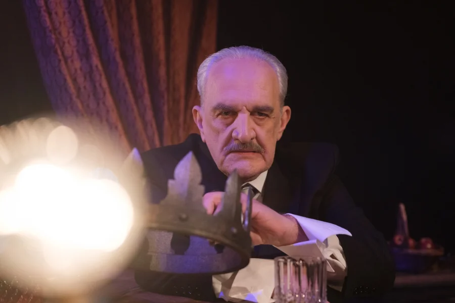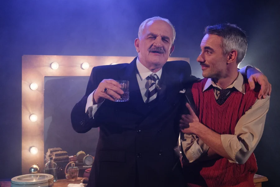 Συνοδοιπόρος του επί σκηνής, ο Δημήτρης Τσιγκριμάνης, ως υποβολέας Φράνκ σε έναν ρόλο-αντίβαρο, που λειτουργεί ως συνομιλητής, μνήμη και καθρέφτης του κεντρικού ήρωα. Η σκηνική τους συνύπαρξη δημιουργεί μια πυκνή θεατρική συνθήκη, όπου ο λόγος, η σιωπή και η παρουσία αποκτούν ίσο βάρος.