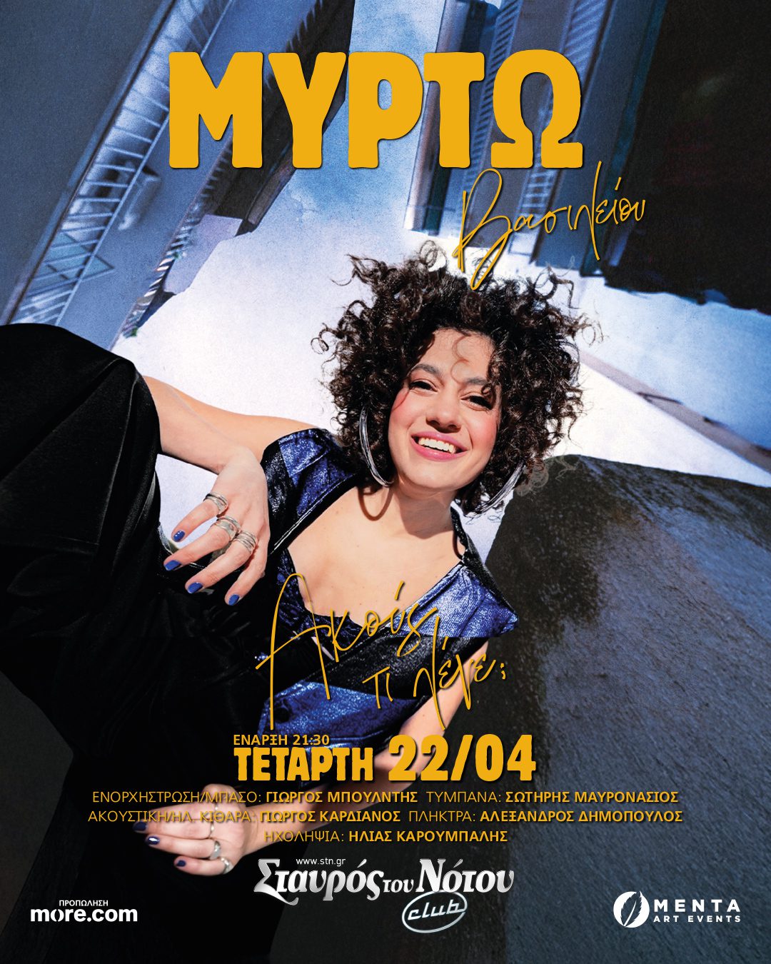 Η Μυρτώ Βασιλείου και η μπάντα της επιστρέφουν στο Club του Σταυρού του Νότου, την Τετάρτη 22 Απριλίου.