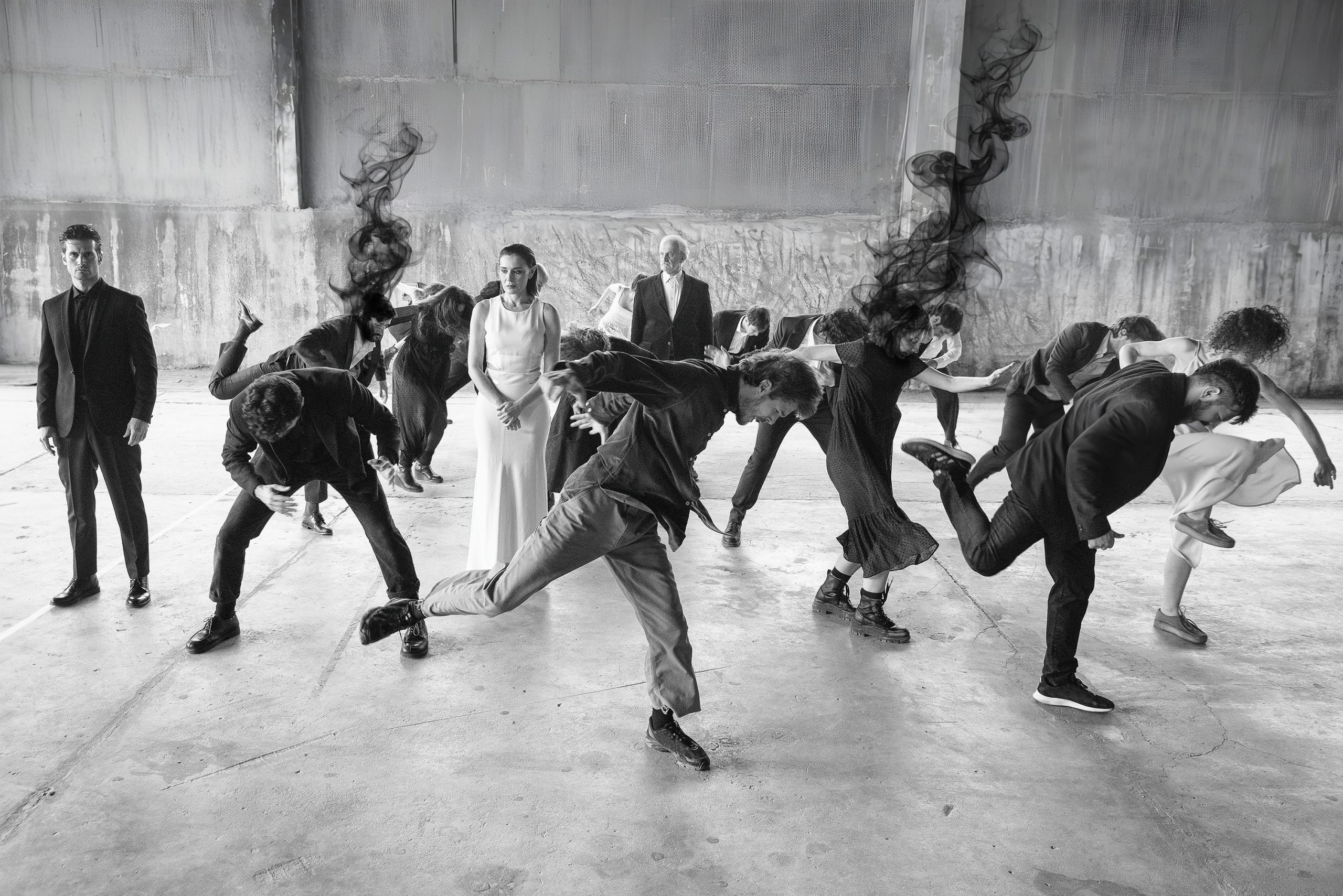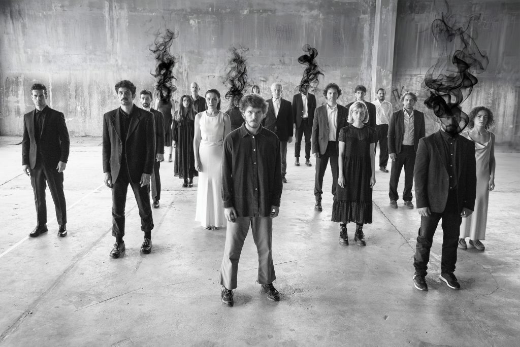 Είκοσι δύο ηθοποιοί, σε μια σκηνή σχεδόν γυμνή, συγκροτούν έναν Χορό-πρωταγωνιστή. Με εργαλεία τον λόγο, την κίνηση και τη μουσική, αποτυπώνουν το συλλογικό τραύμα μιας κοινωνίας που στέκεται μουδιασμένη μπροστά στην καταστροφή.