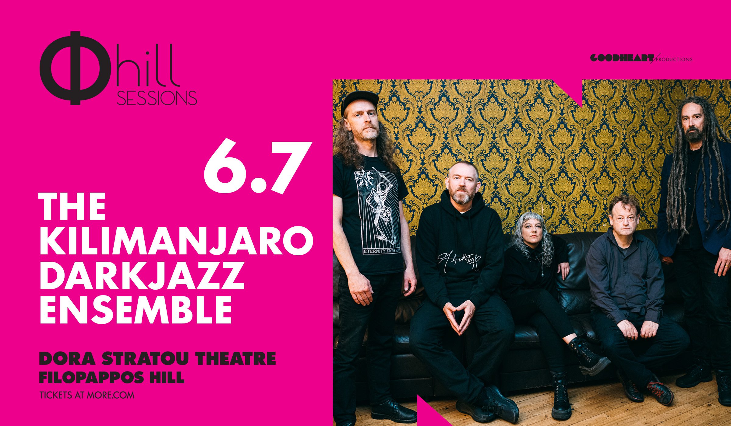 Τη Δευτέρα 6 Ιουλίου οι The Kilimanjaro Darkjazz Ensemble φέρνουν στη σκηνή του Θεάτρου «Δόρα Στράτου» τον χαρακτηριστικό dark jazz ήχο τους, που κινείται ανάμεσα στην ambient, το post rock, την πειραματική electronica και τον αυτοσχεδιασμό, καλώντας μας να ταξιδέψουμε στο υποβλητικό ηχητικό τους σύμπαν, στο πλαίσιο του φετινού Φ hill Sessions.