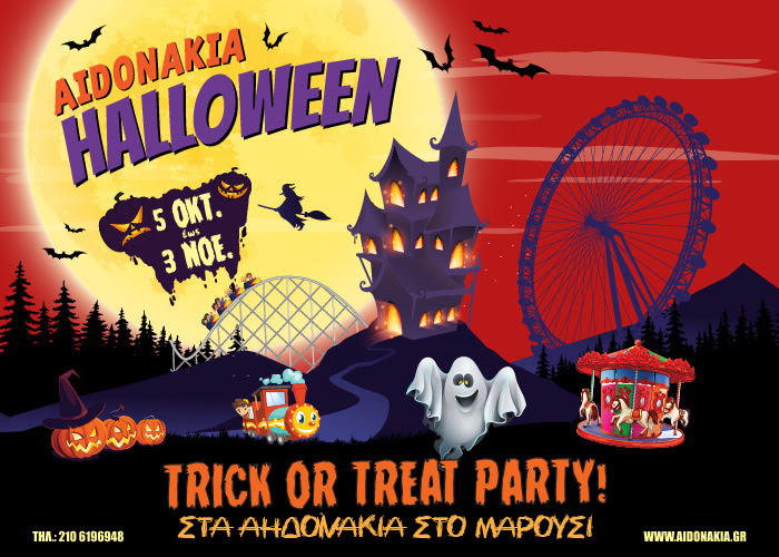 Οι μάγισσες Άμπρα και Κατάμπρα, το πρώτο παιδικό haunted adventure house, το µοναδικό τρένο haunted train fantasma, η συναρπαστική laser tag arena, 20 παιχνίδια κλασσικού Λούνα Παρκ, πολλές δράσεις και events, καλλιτεχνικά και δημιουργικά εργαστήρια που θα εξάψουν την παιδική φαντασία! Το Aidonakia Halloween αλλάζει το παιχνίδι και θα χαρίσει αμέτρητες στιγμές χαράς σε μικρούς και μεγάλους!