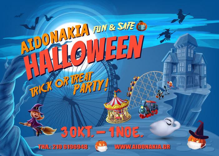 Τεράστιες κολοκύθες, κεριά, μάγισσες, σκούπες, γλυκά, μία έπαυλη γεμάτο μυστήριο και το χαρωπό φαντασματόσπιτο του Blinky θα εξάψουν την παιδική φαντασία! Οι μικροί μας φίλοι θα περάσουν από το Μαγεμένο Δάσος με το Τεράστιο Στοιχειωμένο Δένδρο, θα ανακαλύψουν όλα όσα κρύβει η Τεράστια Κολοκύθα και εάν λύσουν τους γρίφους που θα τους βάλουν οι μάγισσες, Άμπρα και Κατάμπρα στo τρομερό Halloween Κάστρο, θα πάρουν το τρένο-φάντασμα για να φτάσουν στην κοιλάδα με τις περιπλανώμενες ψυχές…και στο τέλος θα φωτογραφηθούν με το παιχνιδιάρικο φαντασματάκι Blinky, τη μασκώτ του Aidoanakia Halloween, μέσα στο Blinky’s House.