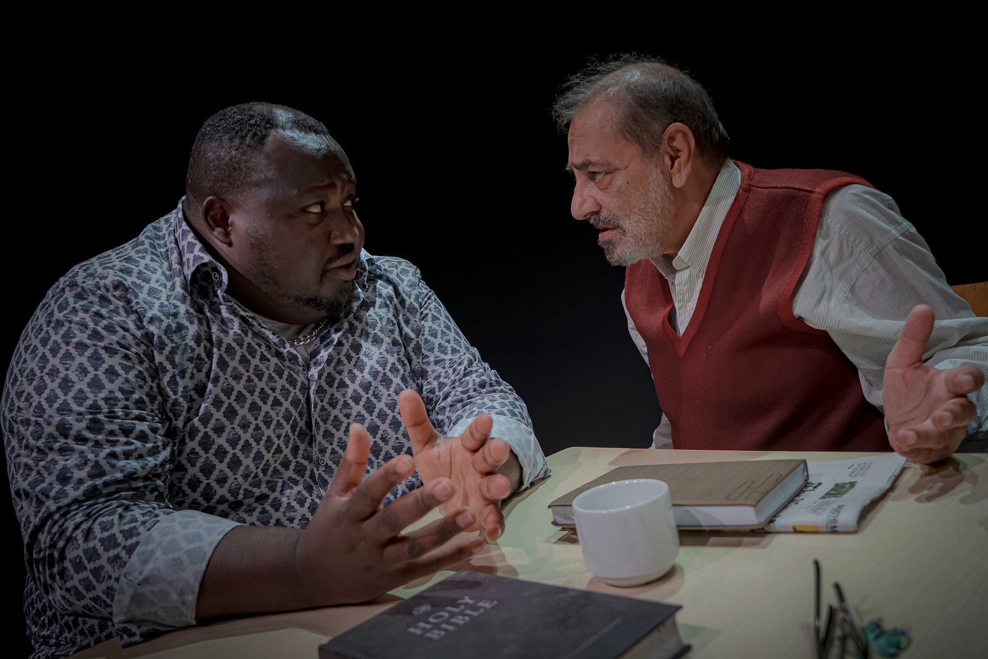 Τη μετάφραση και σκηνοθεσία υπογράφει ο Αντώνης Καφετζόπουλος, ο οποίος συμπρωταγωνιστεί με τον Ζερόμ Καλούτα σε μια σπαρακτική σύγκρουση δύο αντιδιαμετρικών κόσμων — πίστης και απόγνωσης, φωτός και σκότους. Ένα έργο λόγου και εσωτερικής έντασης, μια υπαρξιακή μονομαχία για το τι αξίζει να κρατήσει έναν άνθρωπο στη ζωή.