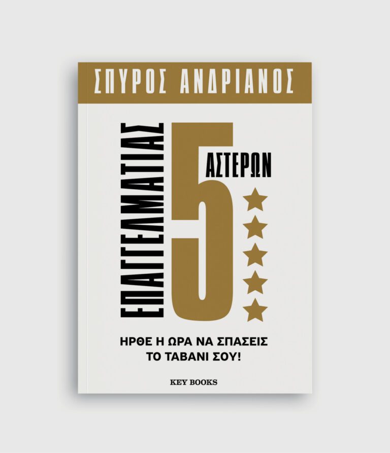 Και κάπως έτσι ξεκινά ακόμα μία μέρα: με μια πίκρα που δεν φεύγει ούτε με τον τρίτο καφέ. Αν υπήρχε ένα κουμπί που θα τα άλλαζε όλα και θα σου πρόσφερε όσα θέλεις, χρειάζεσαι και αξίζεις θα το πατούσες; Θα τολμούσες την επαγγελματική μεταμόρφωση που θα σε εκτόξευε; Το Επαγγελματίας 5 Αστέρων είναι εδώ για να σε ξεβολέψει, να αλλάξεις πορεία, να σπάσεις τα «αλυσίδες» που σε βουλιάζουν. Με περισσότερα από είκοσι χρόνια δραστηριότητας στον επαγγελματικό και επιχειρηματικό κόσμο, τρεις επιχειρήσεις που τις έχτισε απ’ το μηδέν και χιλιάδες ανθρώπους που τον εμπιστεύονται για να εξελιχθούν επαγγελματικά, ο Σπύρος Ανδριανός έρχεται να προσφέρει έναν πρακτικό και πλήρως εφαρμόσιμο οδηγό επαγγελματικής επιτυχίας.