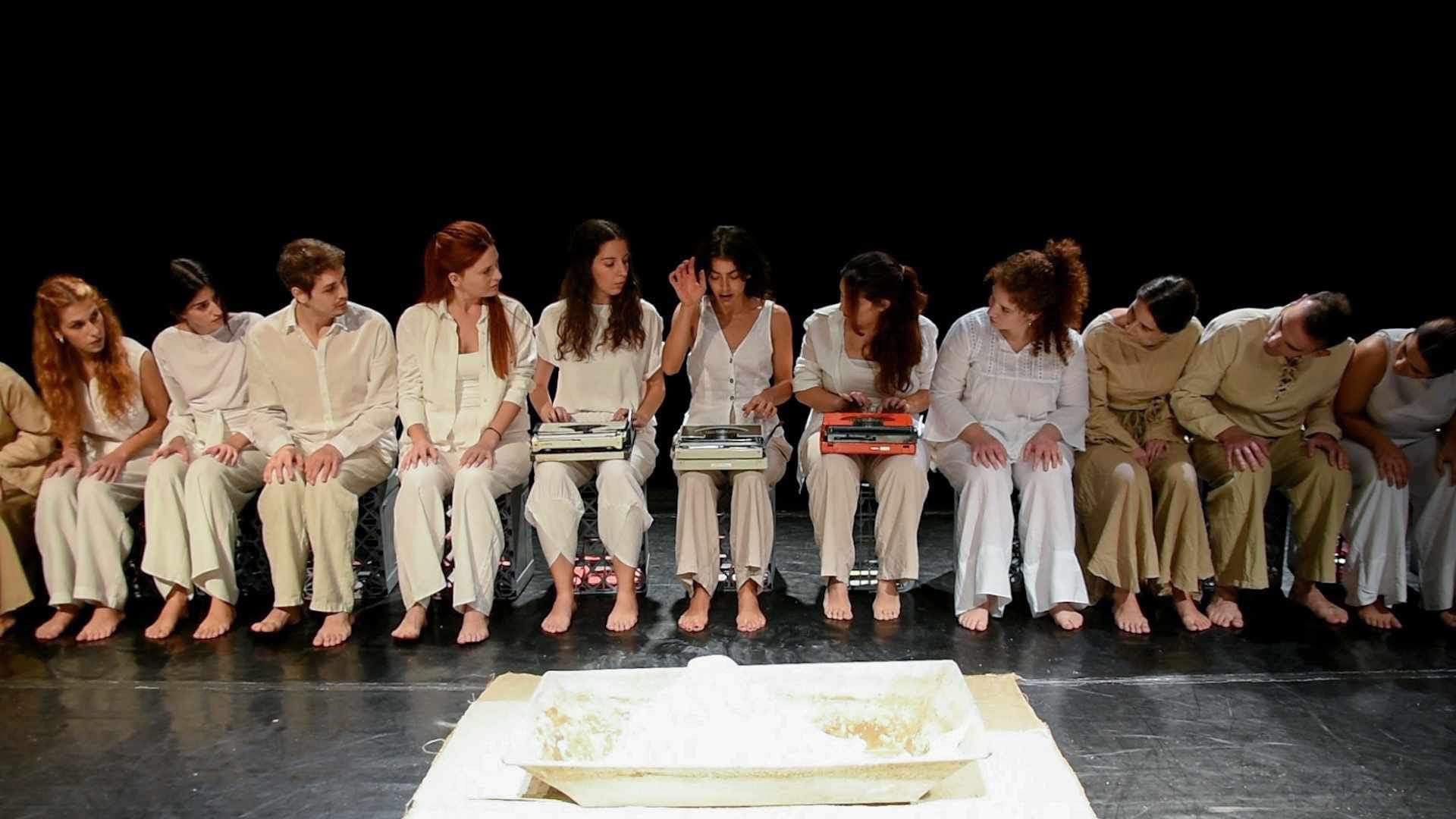 Με λιγοστά σκηνικά αντικείμενα (14 κουτιά, τρεις γραφομηχανές, έναν κουβά, μπουκάλια με νερό και μια σκάφη πλυσίματος), αξιοποιώντας τα σώματα και τις φωνές των ερμηνευτών, η παράσταση συνιστά μια ανατρεπτική, καθηλωτική σκηνική ανάγνωση του διηγήματος, που τιμά τον μεγάλο ποιητή της πεζογραφίας μας και αναδεικνύει τον γλωσσικό πλούτο της ελληνικής γλώσσας, σε μια εποχή που αυτή απερίσκεπτα συρρικνώνεται.