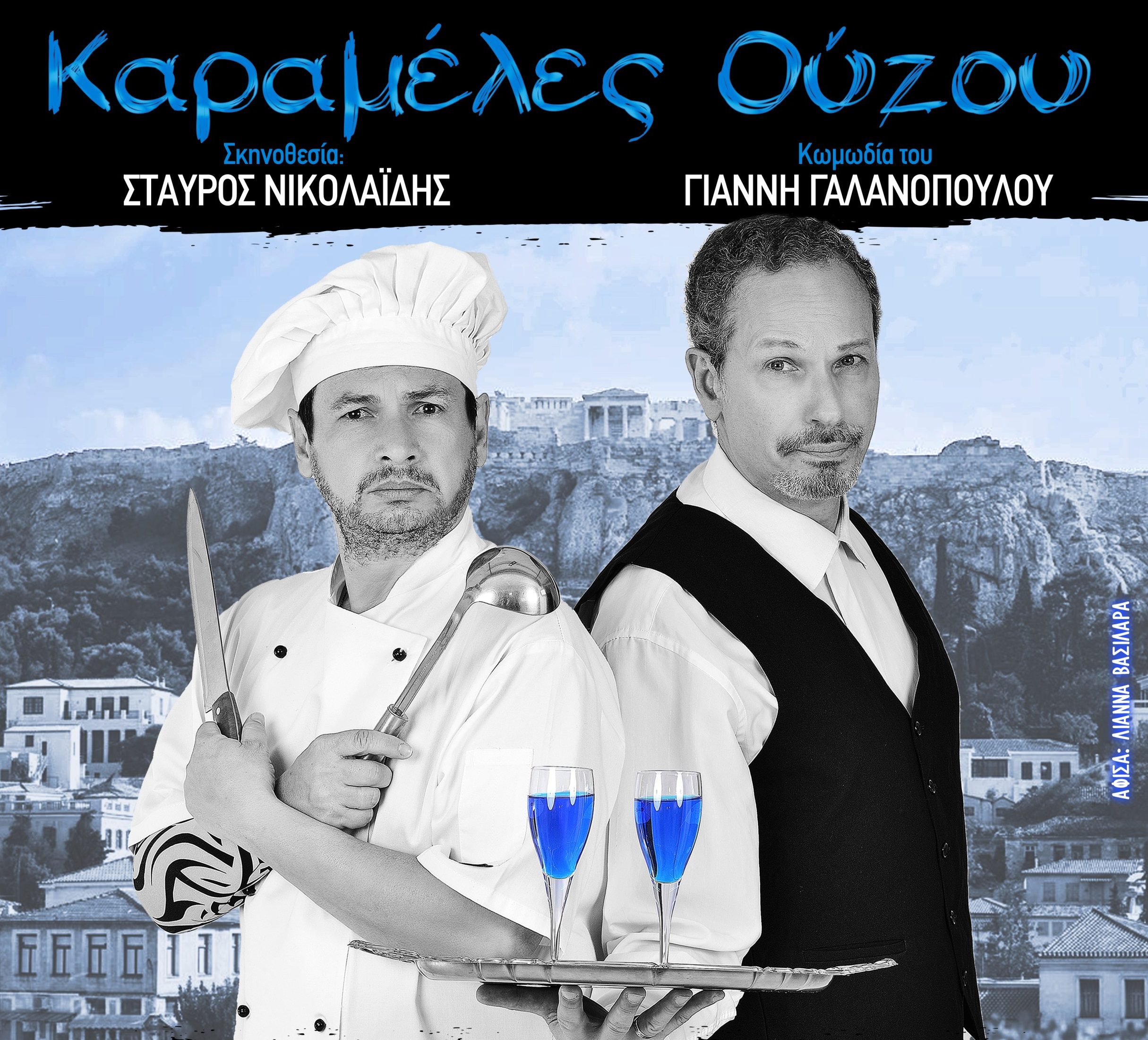 Μια «μυστήρια» νύχτα, δύο εγκλωβισμένοι και μπόλικες ανατροπές γέλιου! Έξω αστραπές και βροντές. Μέσα, δύο άνθρωποι παγιδεύονται στον τελευταίο όροφο ενός πολυτελούς ξενοδοχείου. Ο Βοηθός Σεφ και ο Σερβιτόρος. Κανείς δεν ξέρει πώς και γιατί βρέθηκαν εκεί – ούτε καν οι ίδιοι. Αυτή η νύχτα δεν θα μοιάζει με καμία άλλη… Καθώς οι κεραυνοί φωτίζουν το σκοτάδι, ξετυλίγεται μια σειρά από απρόβλεπτα γεγονότα που ακροβατούν ανάμεσα στο μυστήριο και την κωμωδία. Οι «Καραμέλες Ούζου» είναι γεμάτες ατάκες που «δαγκώνουν», ανατροπές που ξεγελούν και καταστάσεις τόσο παράλογες, που μοιάζουν σχεδόν αληθινές. Όταν το θύμα αποφασίζει να γίνει θύτης, τα πάντα ανατρέπονται. Το έργο μιλά για τη σύγχρονη εργασιακή πραγματικότητα, το μπούλινγκ, τις ψυχικές αντοχές και τις μικρές “θεραπείες” που αναζητούμε όλοι, από τα χάπια μέχρι το ίδιο το χιούμορ, ακόμη και απέναντι στον θάνατο… Κι αν η εκδίκηση είναι ένα πιάτο που τρώγεται κρύο, στις «Καραμέλες Ούζου» αυτό το πιάτο σερβίρεται καυτό, πικάντικο και άκρως ξεκαρδιστικό! Όσο για το φινάλε: γλυκόπικρο και συγκινητικό, φέρνει μια τεράστια ανατροπή που κανένας δεν περιμένει και θα τη θυμάστε για καιρό…