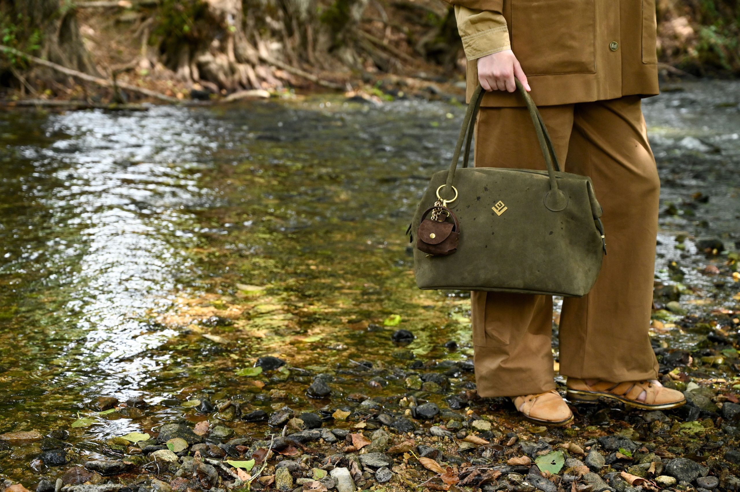 Κατασκευασμένη από 100% recycled suede leather, με λεπτομέρειες από γνήσιο δέρμα, προσφέρει έναν συνδυασμό reusable πολυτέλειας και ανθεκτικότητας. Το εσωτερικό της με υφασμάτινη φόδρα και πρακτική τσέπη με υποδοχή κλειδιών ολοκληρώνει την καθημερινή της λειτουργικότητα.